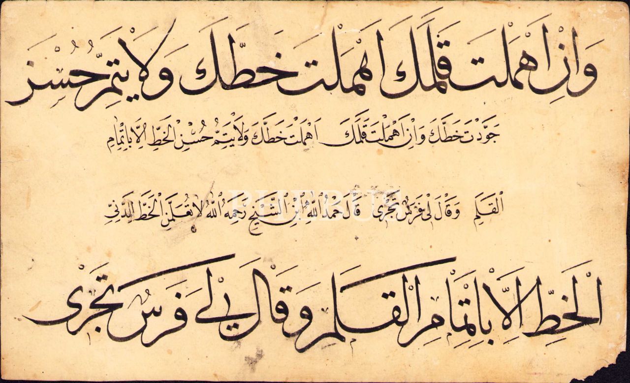 Erken Dönem Hoca İşi Sülüs-Nesih Yazı ile Şeyh Hamdullah'ın Sözü, Mealen: Hüsn-i Hat, Kaleme Özen Göstermekle Olur, Güzel Yazmak İstersen Kalemine Dikkat Et., hâliyle, 25x15 cm