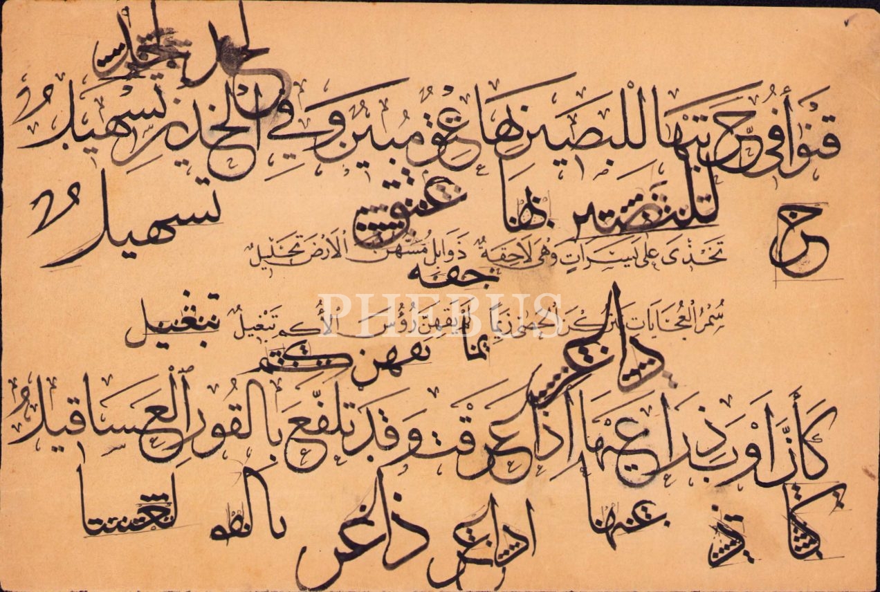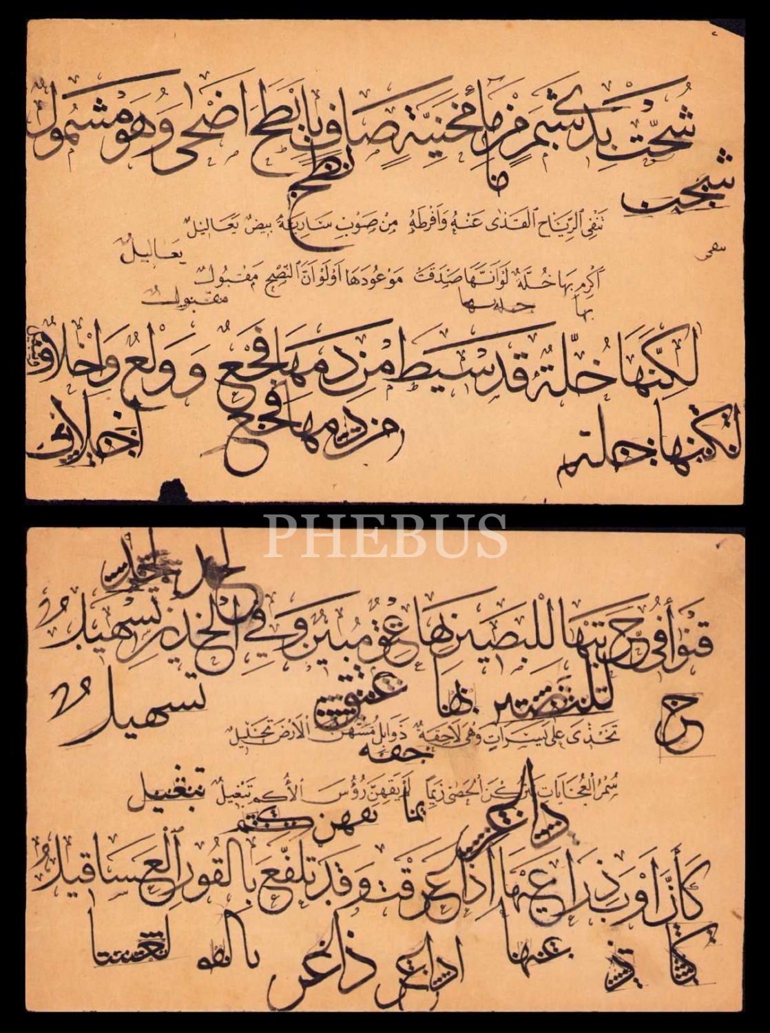 Sülüs Nesih Meşk, üzerinde hoca çıkarmaları mevcut, iki parça, her biri 24x16 cm