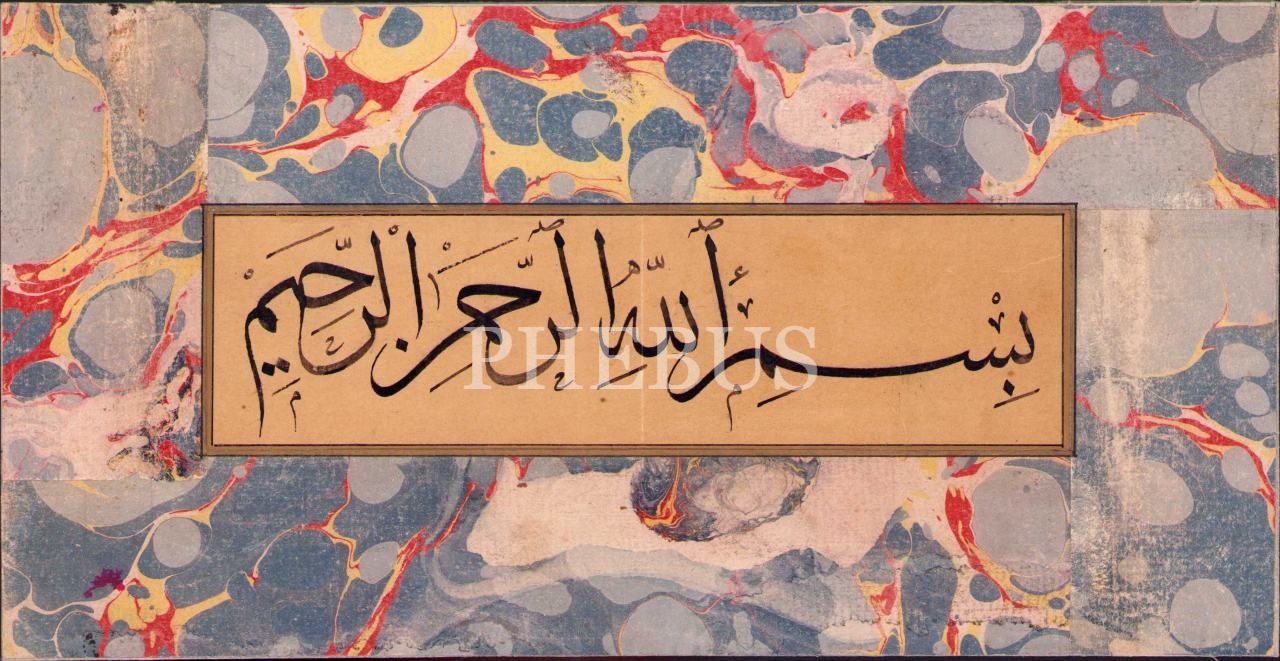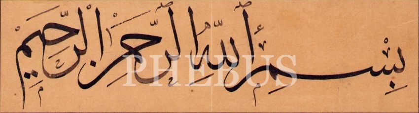 Hoca İşi Sülüs Besmele, ebrulu, sadece yazı 17x5 cm