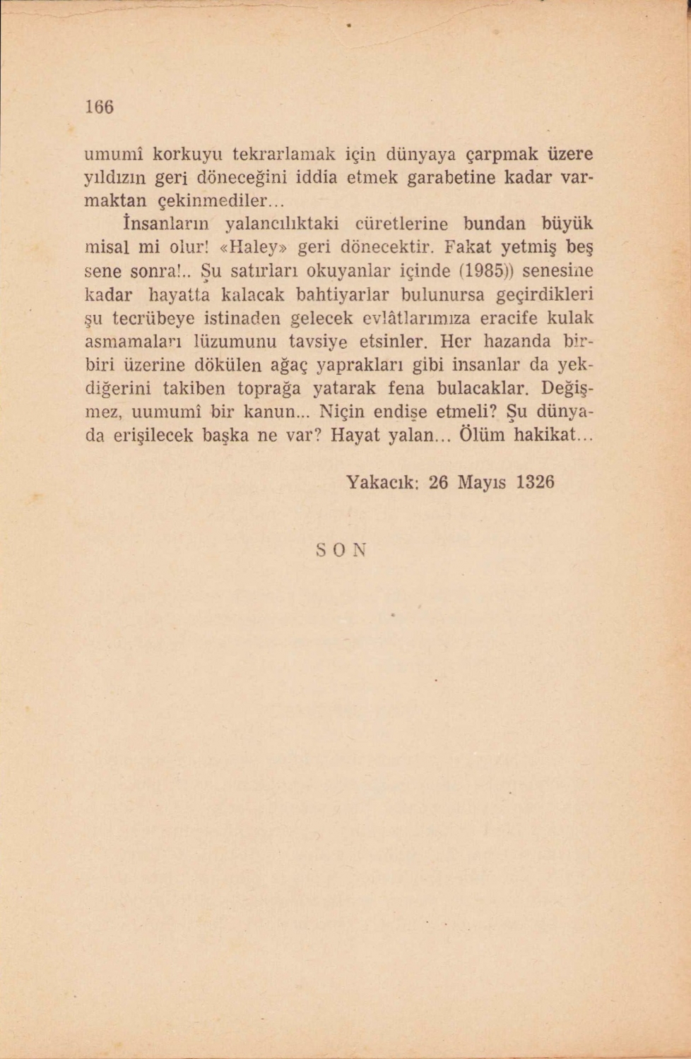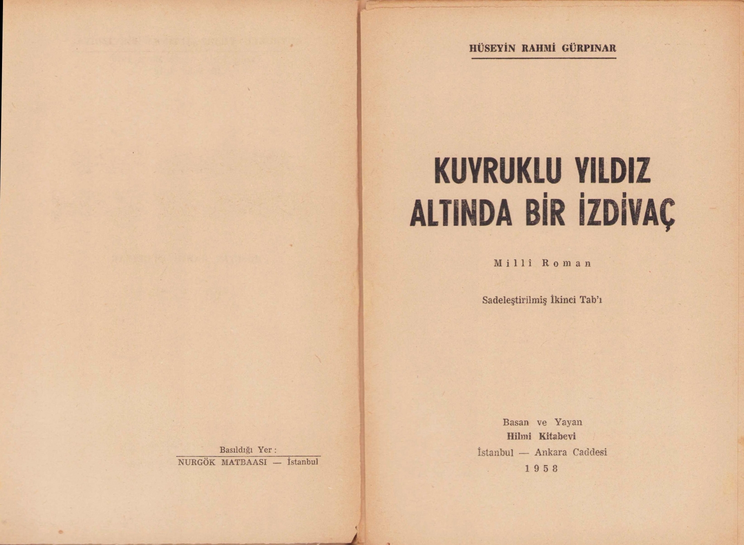 Kuyruklu Yıldız Altında Bir İzdivaç, Hüseyin Rahmi Gürpınar, İstanbul, 1958, sayfalarda kopukluklar var, 166 sayfa, 14x21cm