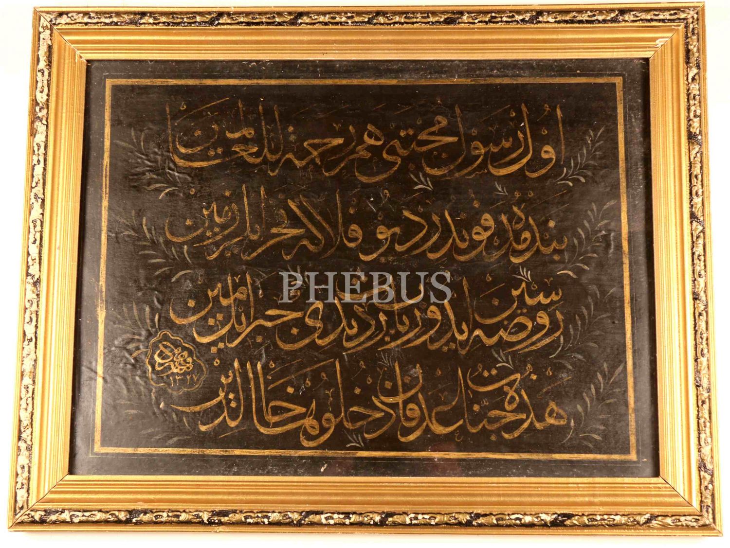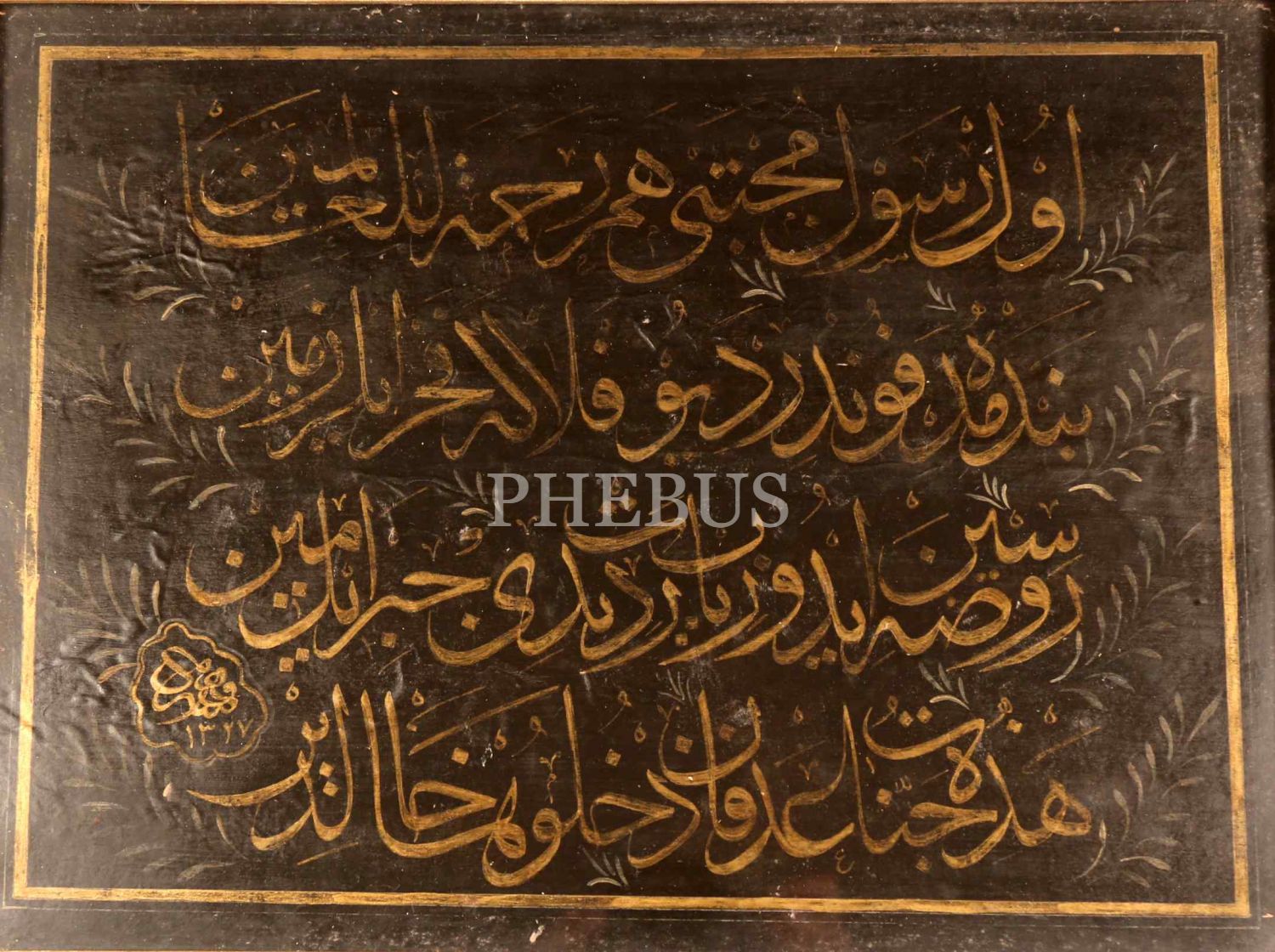 Celî Sülüs Zırnık Levha, "Ol Resûl-i müctebâ hem rahmeten li'l-âlemîn/ Bende medfûndur deyü eflâke fahr eyler zemîn", 1327 tarihli, 42x33 cm