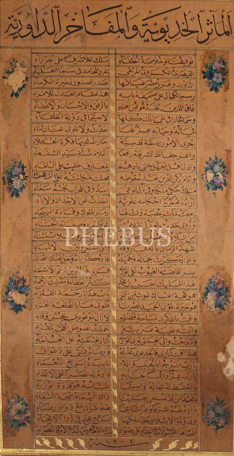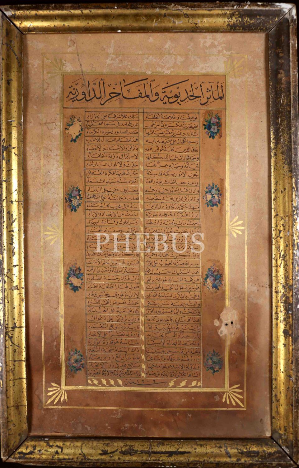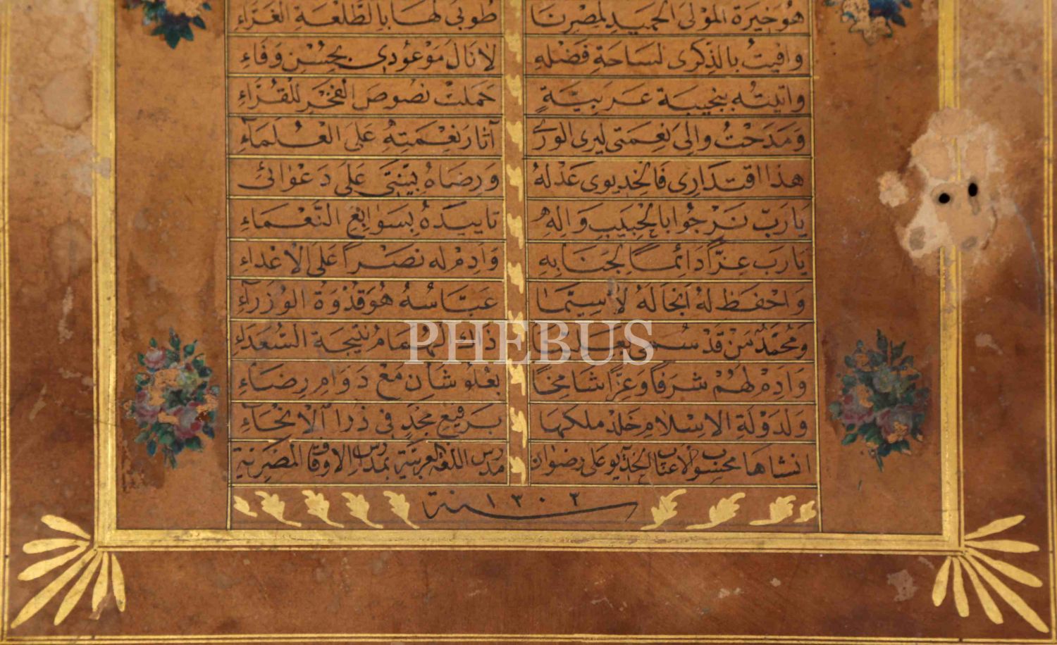 Sülüs Nesih Arapça Şiir Levha, tezhipli, 1303 tarihli, yazı 13x35 cm