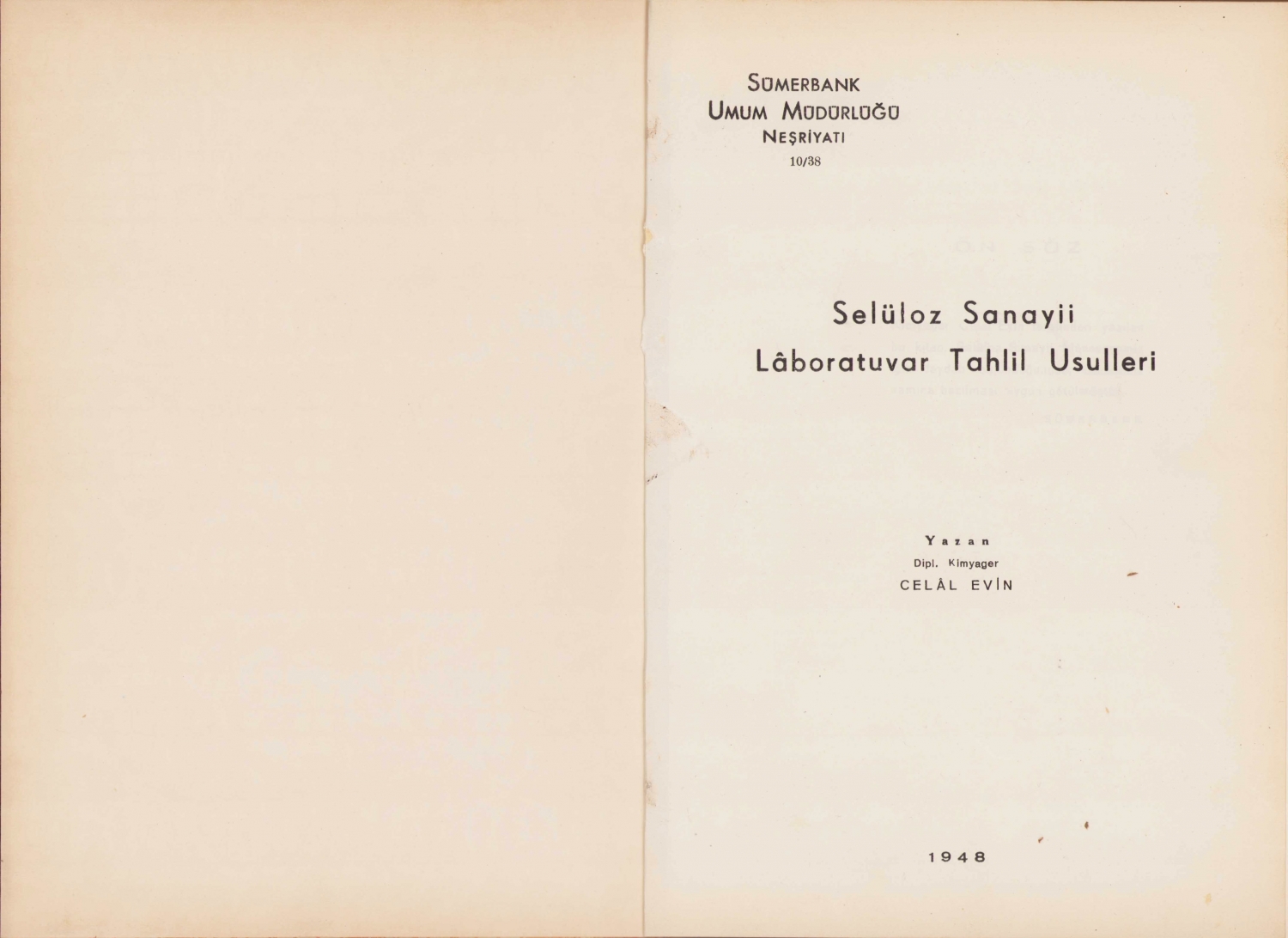 Selüloz Sanayii Laboratuvar Tahlil Usulleri, Celal Evin, 1948, Sümerbank Umum Müdürlüğü Neşriyatı 10/38, görselli, 208 sayfa, 20x28cm