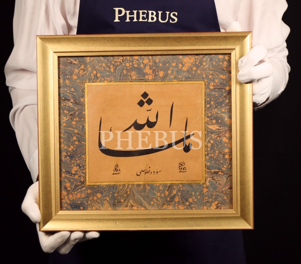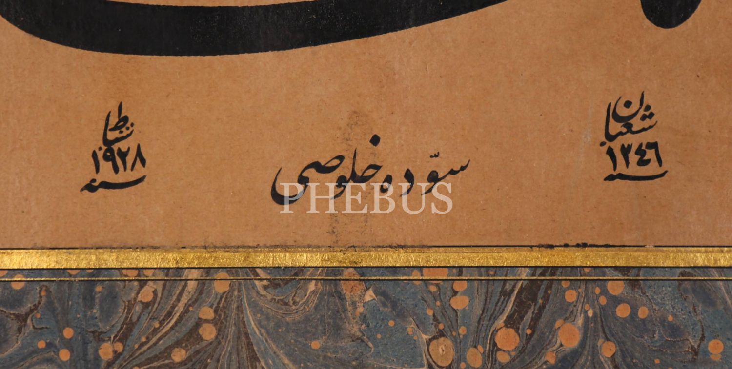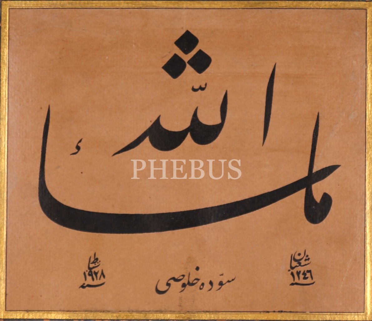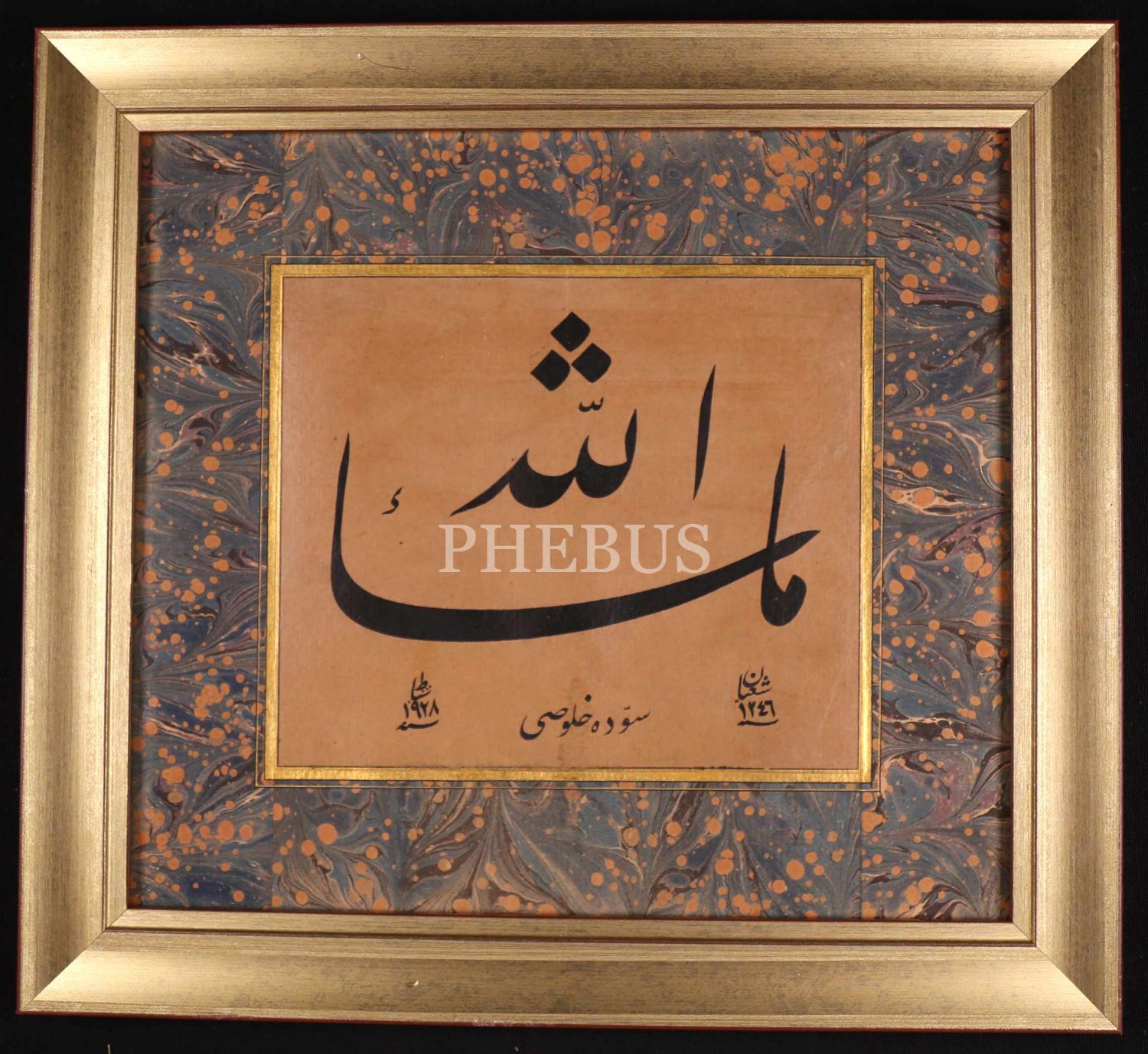 Hulûsi [Yazgan] Efendi'nin Celî Ta'lik Levhası: Maşallah, 1928 tarihli, ebrulu, yazı 18x16 cm