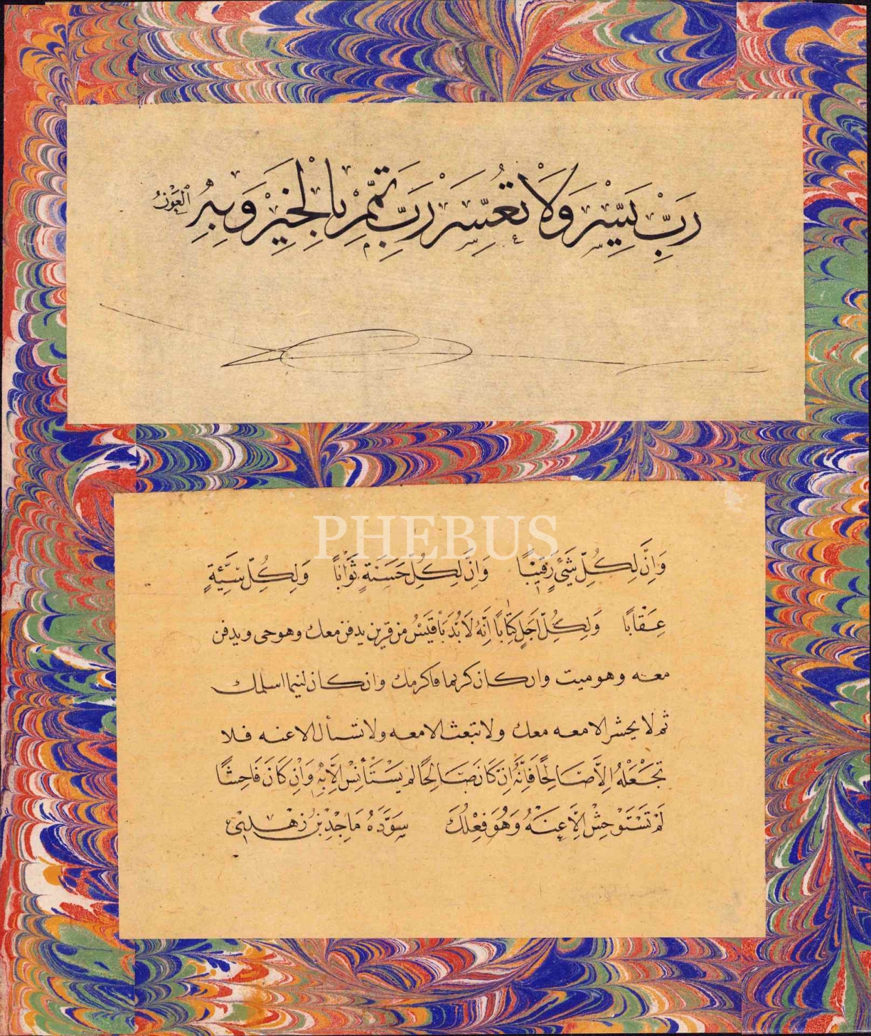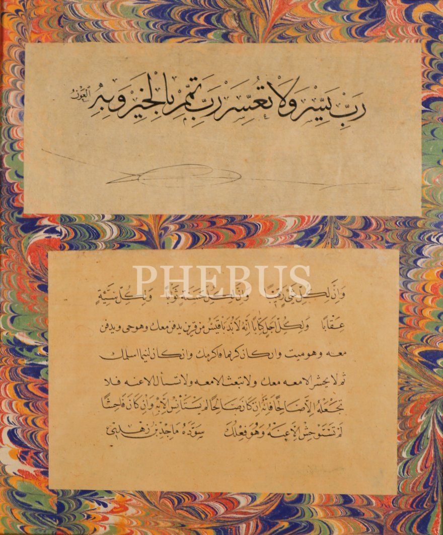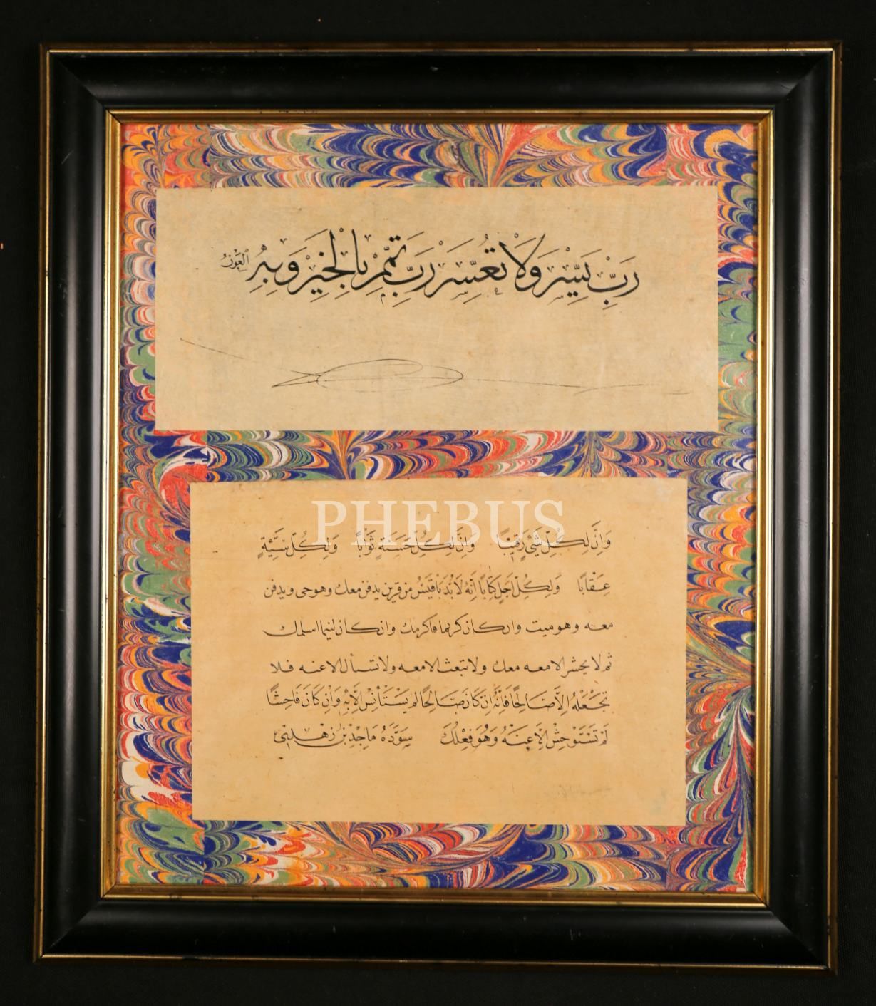 Mâcid Ayral'ın Sülüs Nesih Levhası, "Mâcid" ketebeli, ebrulu, çerçeveli, yazılar 21x9 cm ve 18x13 cm
