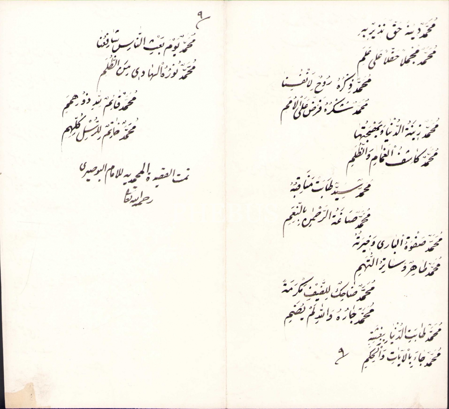 El Yazması Ta'lik Kaside-i Bürde ve Na't-ı Şerif Hâvî Risâle, 5 varak, 15x22 cm
