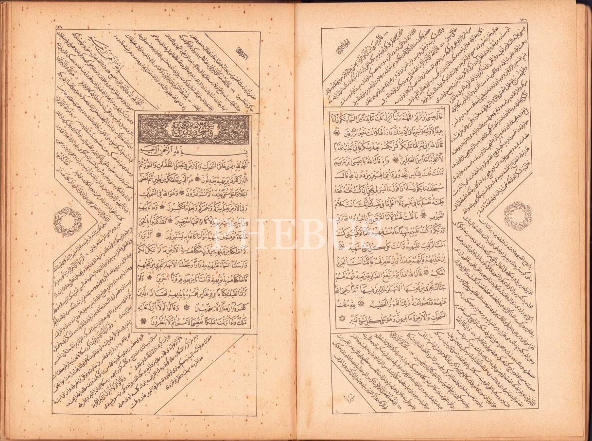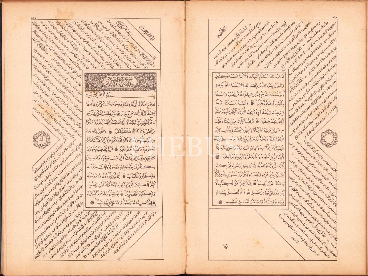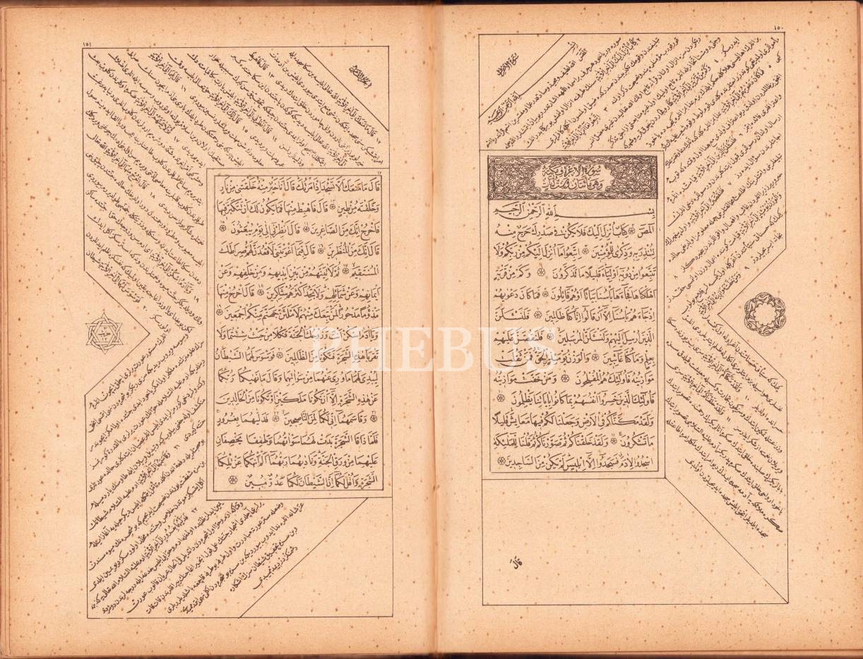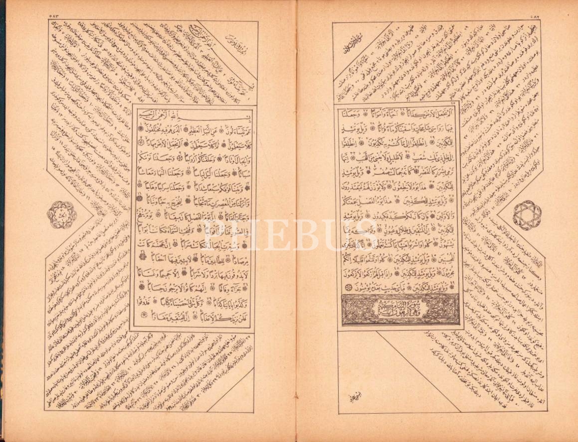 Sultan İkinci Abdülhamid'in İrâdesiyle Bahriye Matbaası'nda Basılan, Altın Varaklı Nefis Cildinde Osmanlıca Kuran-ı Kerim Meâli, 1323 tarihli, 262 sayfa, 14x22 cm