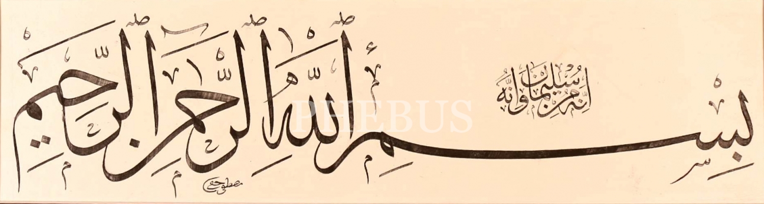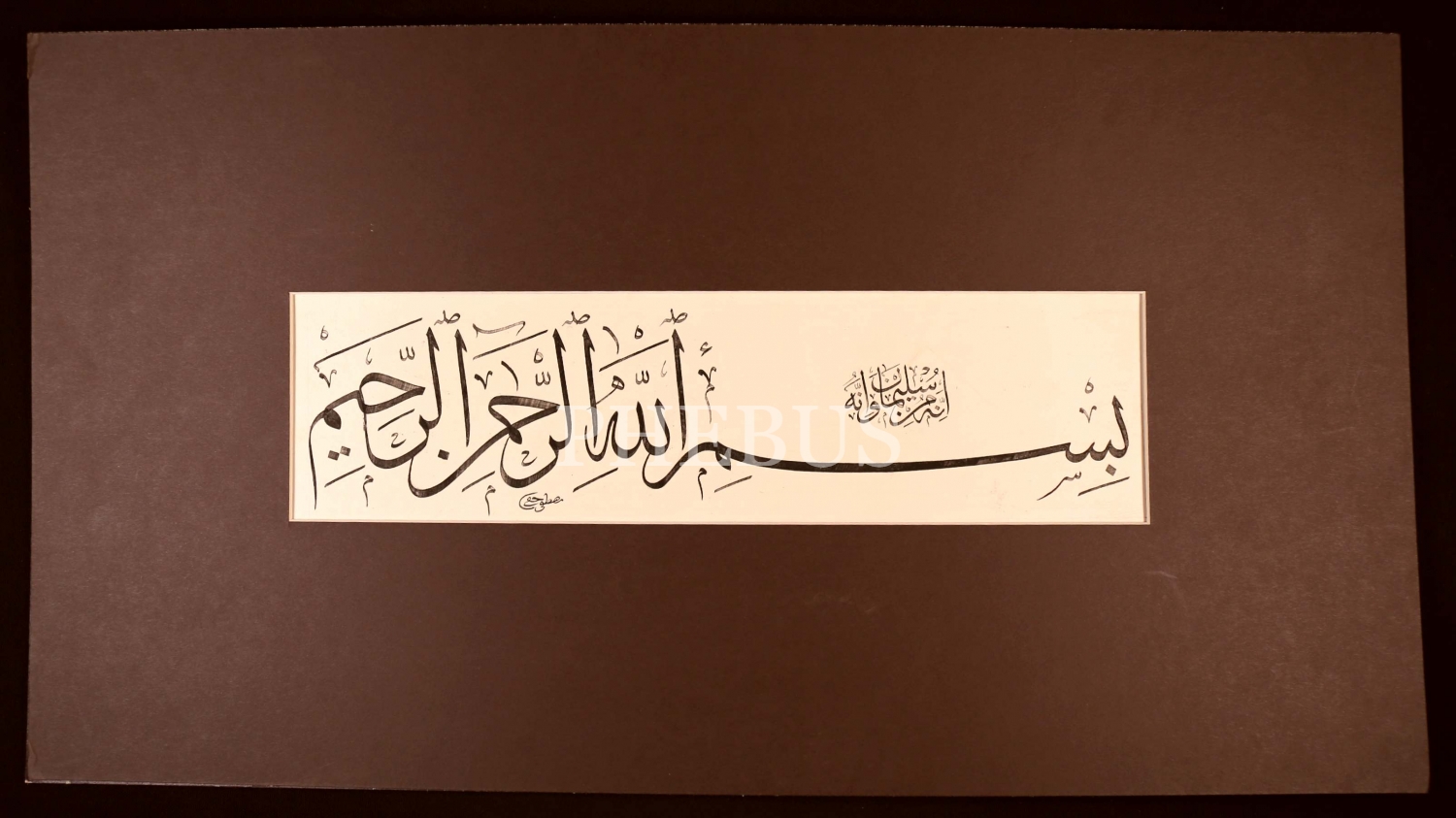 Sülüs Oklu Besmele, "Mustafa Hakkı" ketebeli, 40x11 cm