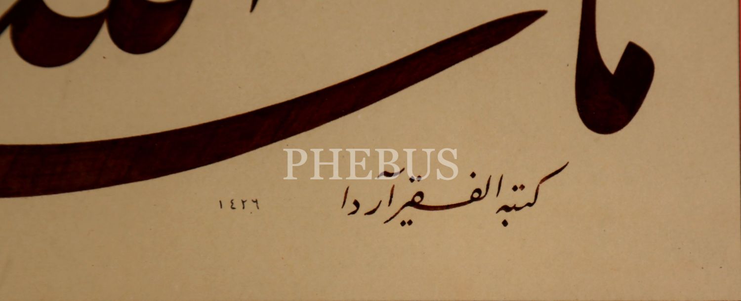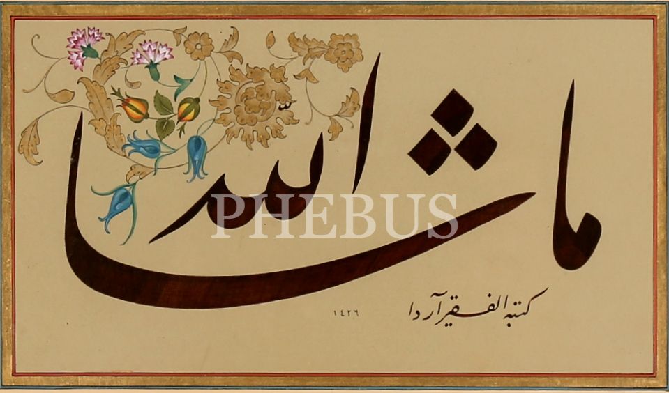 Celî Ta'lik Levha "Maşallah", "Arda [Çakmak]" ketebeli, 1426 târihli, tezhipli, 21x14 cm