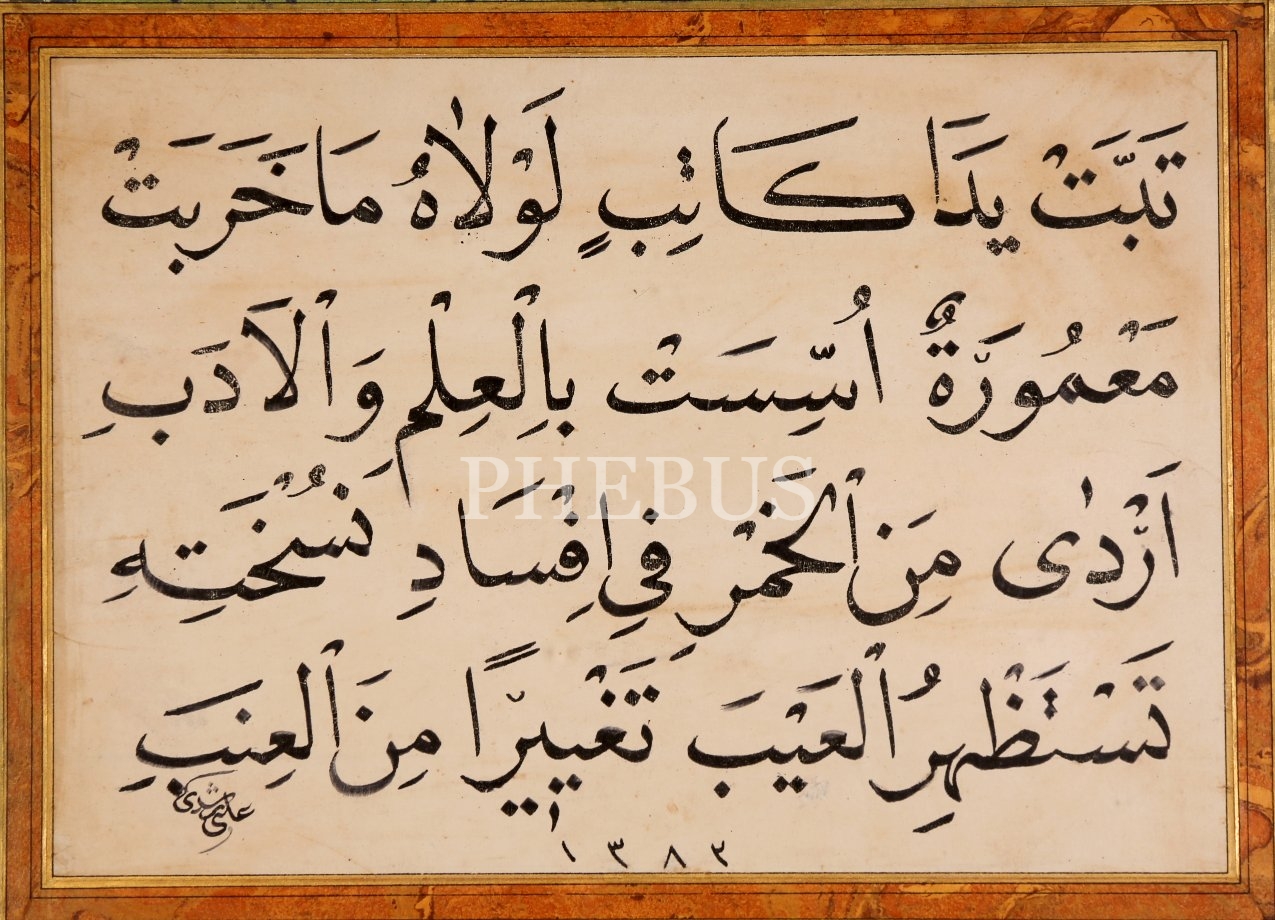 "Ali Rüşdi" ketebeli Celî Nesih Kıt'a, 27x19 cm