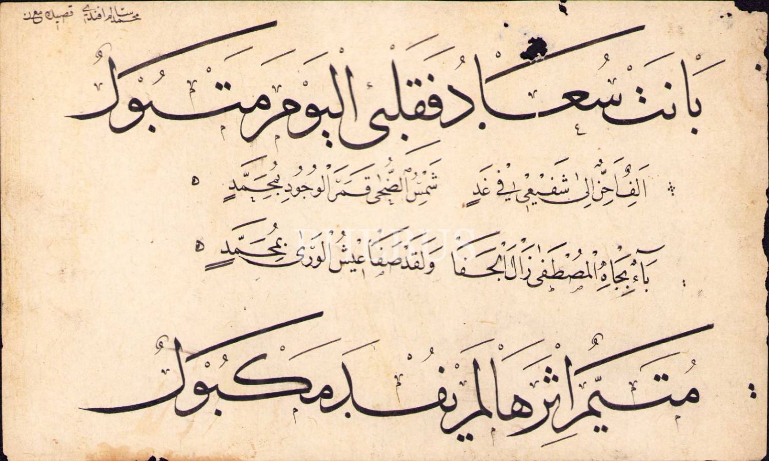 Sülüs Nesih Kaside Meşki, sol üst köşede Osmanlıca "Mehmed Sâlim" yazılı, birleşik hâlde iki parça, 21x26 cm