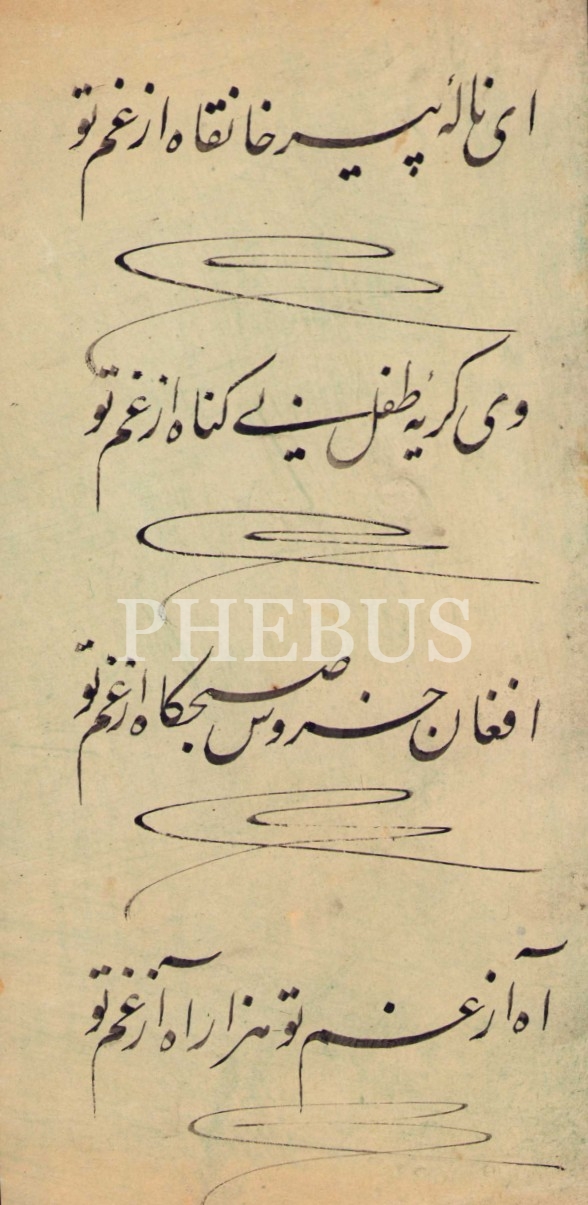 Hoca İşi Farsça Ta'lik Meşk, arkasında "Hasan Hüsnü" notu mevcuttur, 11x24 cm