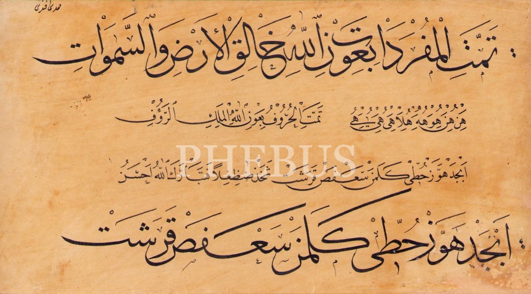 Sülüs Nesih Meşk, üst kısımda Osmanlıca "Hamdi Efendi" yazılı, birleşik hâlde dört parça, her biri 25x14 cm