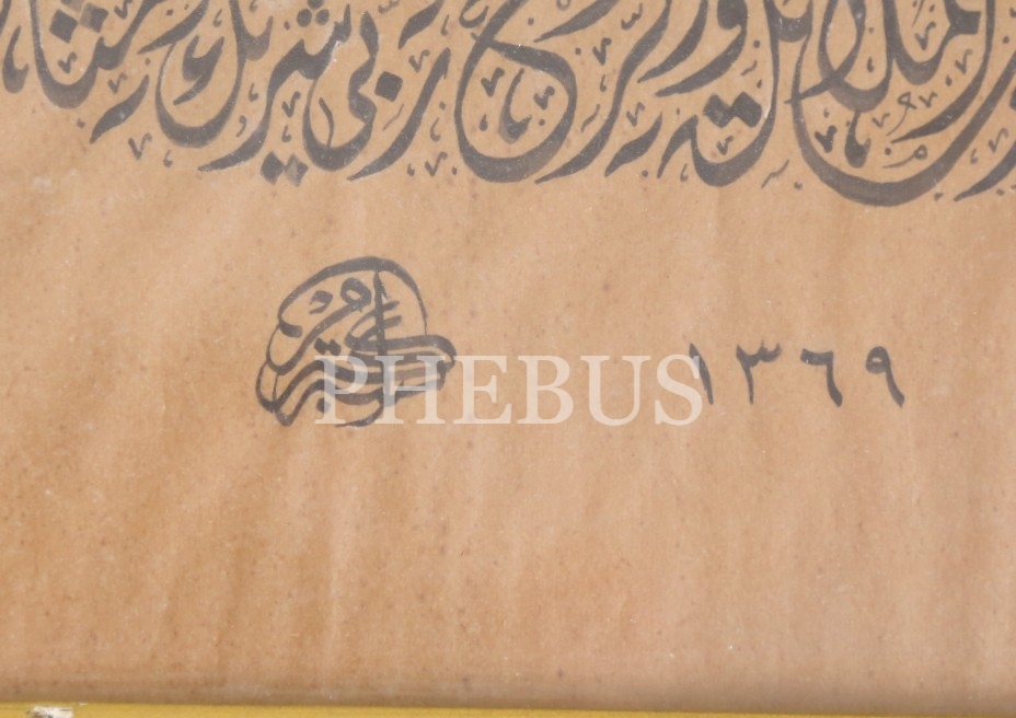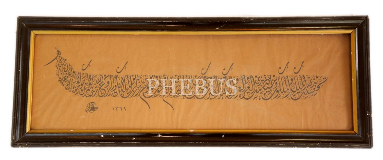 Celî Divanî Levha, "Ekrem" ketebeli, 1369 tarihli, çerçeveli, yazı 66x21 cm