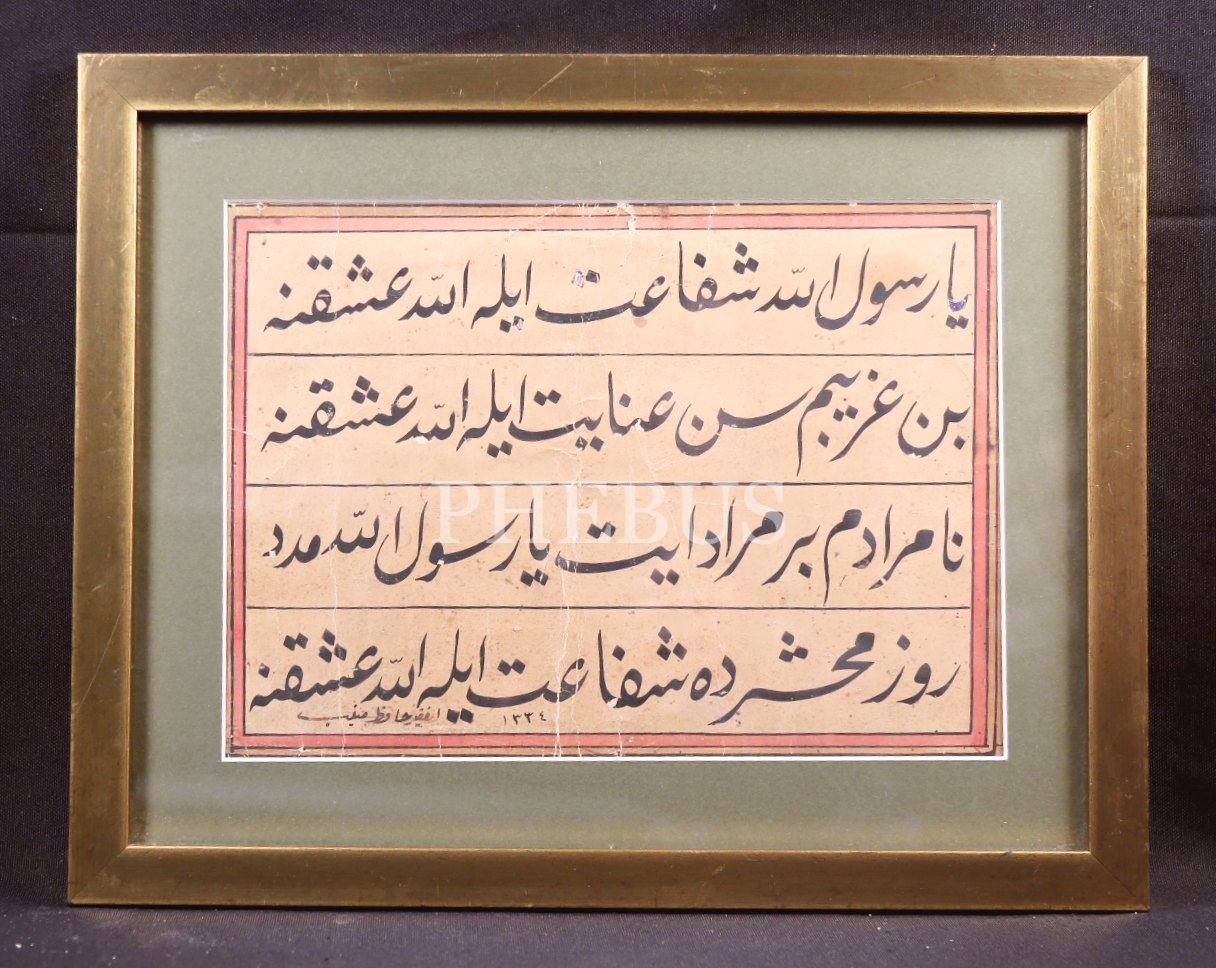 Celî Ta'lik Levha, "Ya Resulullah Şefaat Eyle Allah Aşkına", "Hafız Münib" ketebeli, 27x20 cm