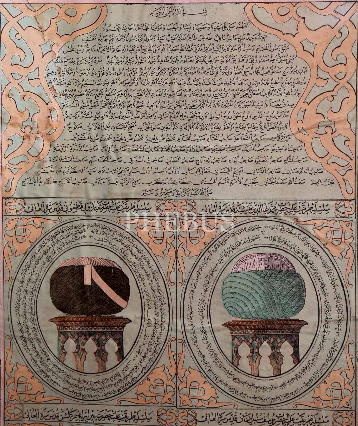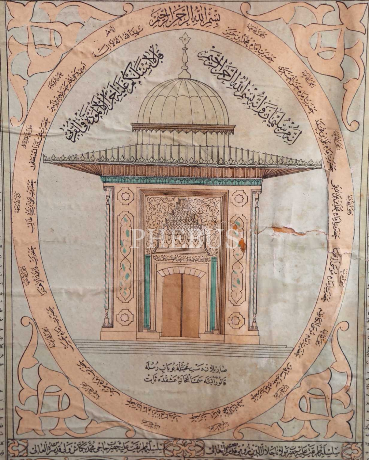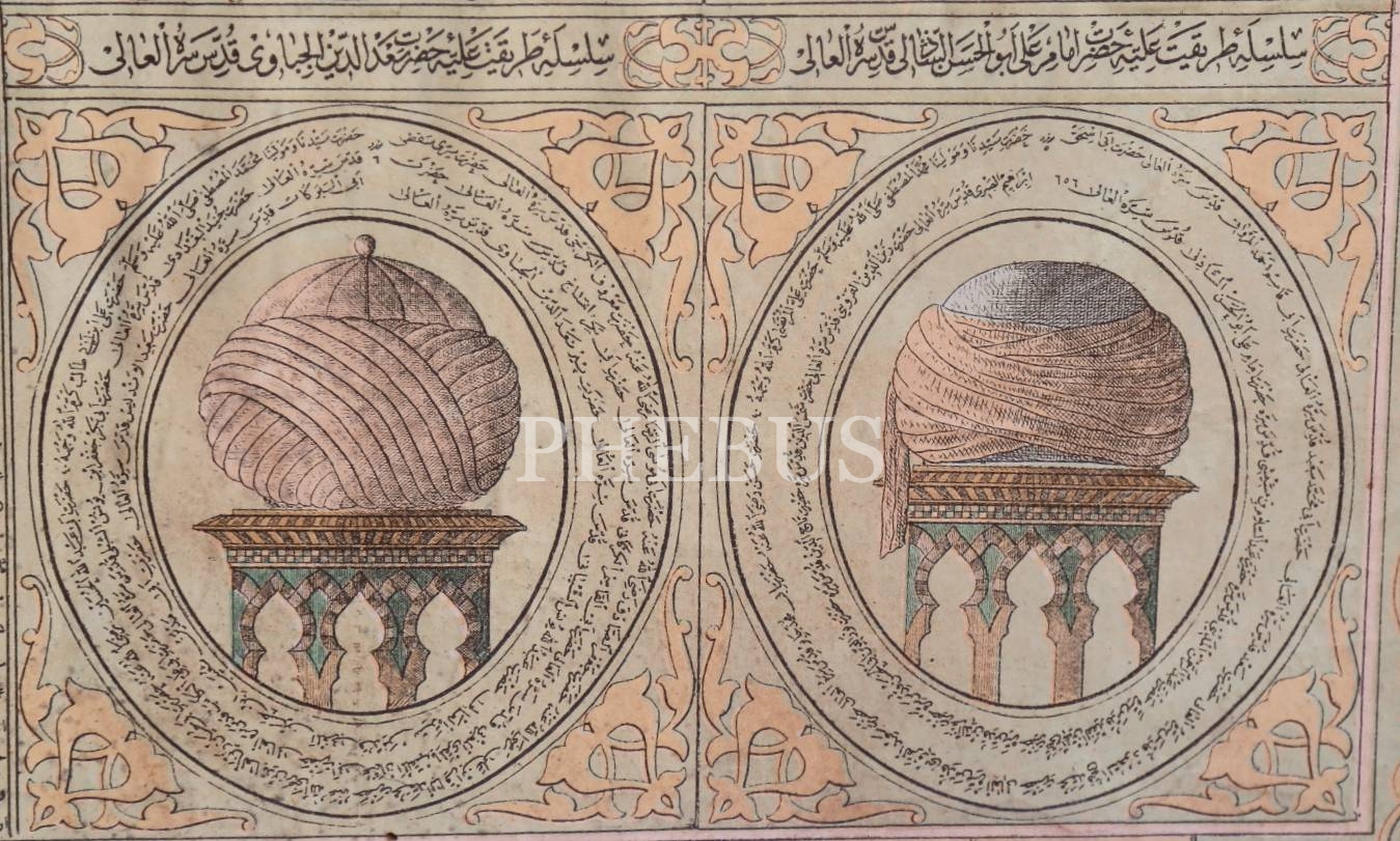 Osmanlı Dönemi Taş Baskı Tarîkat Tâc-ı Şerifleri Levhası, 12 Tarîkate Âit Tâc-ı Şerifler Hakkında Malumat, Maarif Nezâreti'nin ruhsatıyla basılmış, 1314 tarihli, Defter-i Hakani Nezareti'nin Dersaadet Senedat Kalemi Hulefasından, 85x65 cm