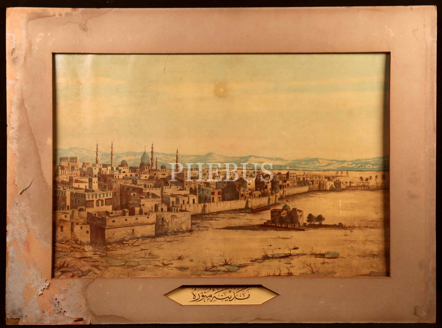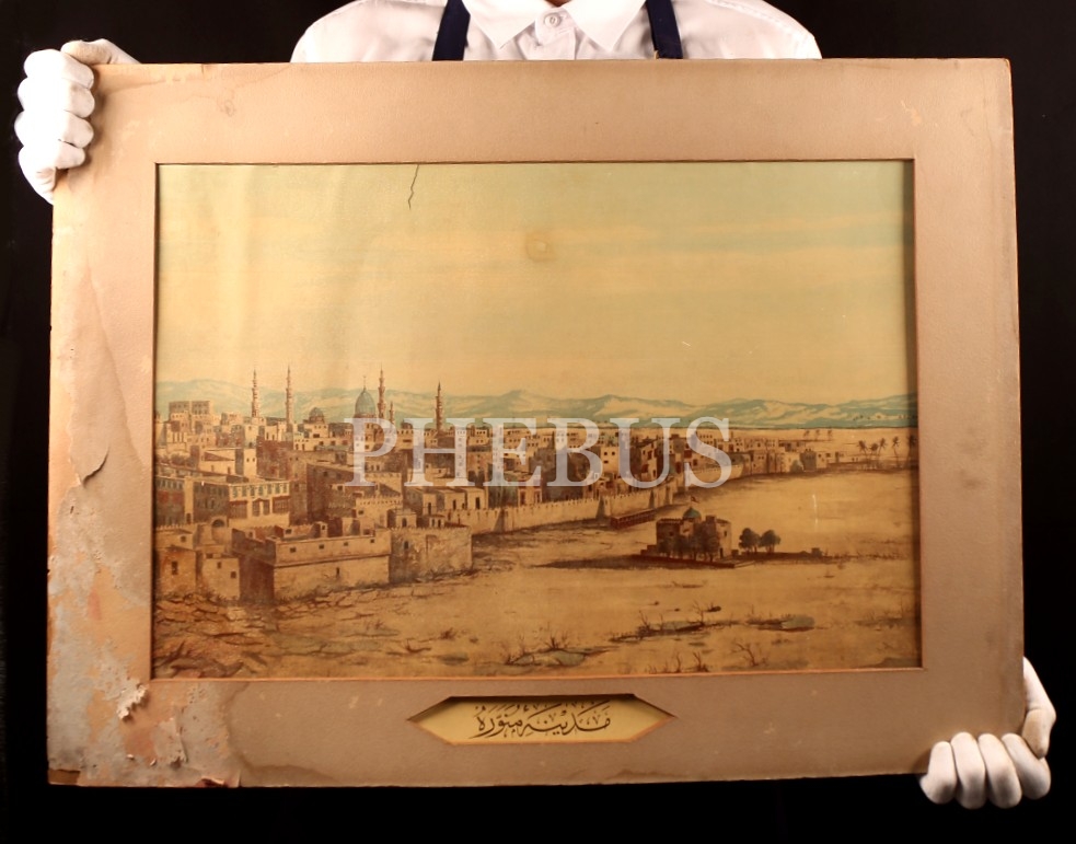 Osmanlı Dönemi Taş Baskı Medine-i Münevvere Afişi, hâliyle, 53x36 cm