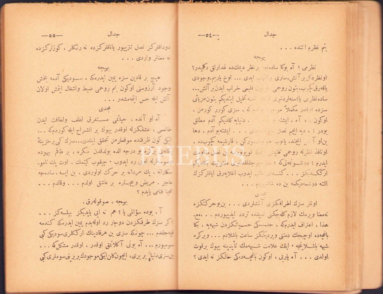 Mehmet Rauf'tan Eşine İthaflı ve İmzalı Osmanlıca Beş Fasıllık "Cidal" Oyunu, Asya Matbaası 1327, 151 sayfa, sırt kısmında yıpranmalar mevcuttur. 13x19 cm