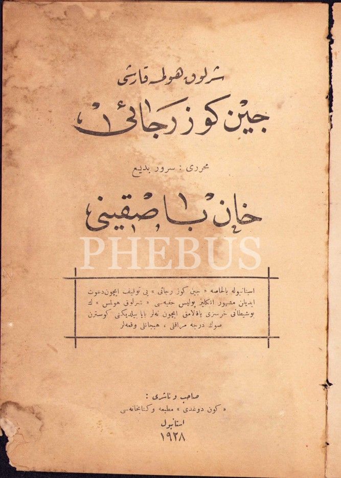 Osmanlıca "Sherlock Holmes'a Karşı Cingöz Recai Serisi: Han Baskını", Server Bedi [Peyami Safa], Gündoğdu Matbaası 1928, 16 sayfa, sayfa kenarları yıpranmış haliyle, 15x22 cm