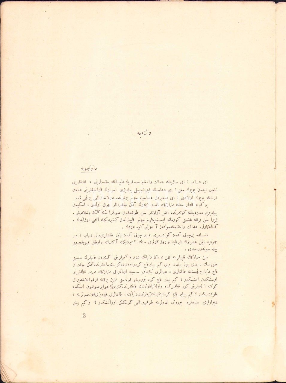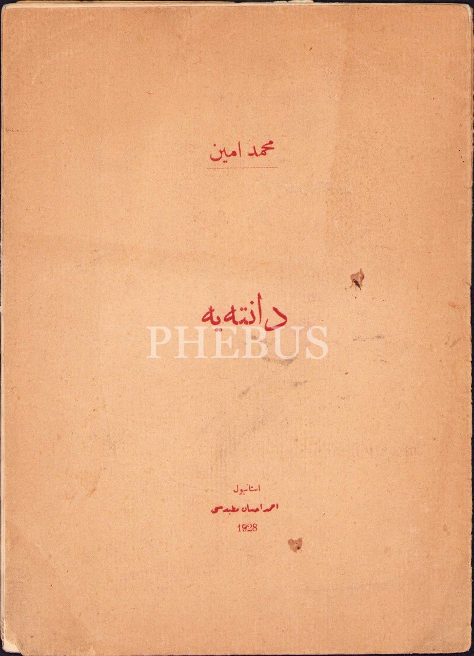 Mehmed Emin'in Osmanlıca "Danteye" Başlıklı İncelemesi, Ahmed İhsan Matbaası 1928, 12 sayfa, kitap sırtı yıpranmış haliyle, 20x28 cm