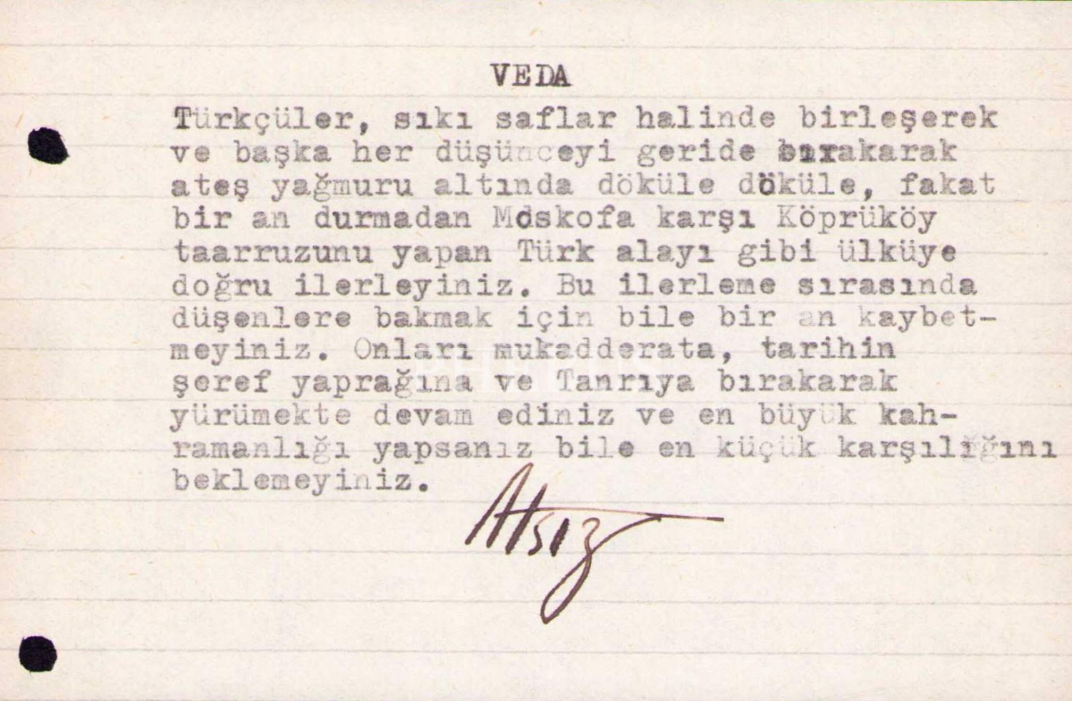 Yazar, Şâir ve Mütefekkir Hüseyin Nihal Atsız'dan İmzalı "Veda" Metni, 9x14 cm