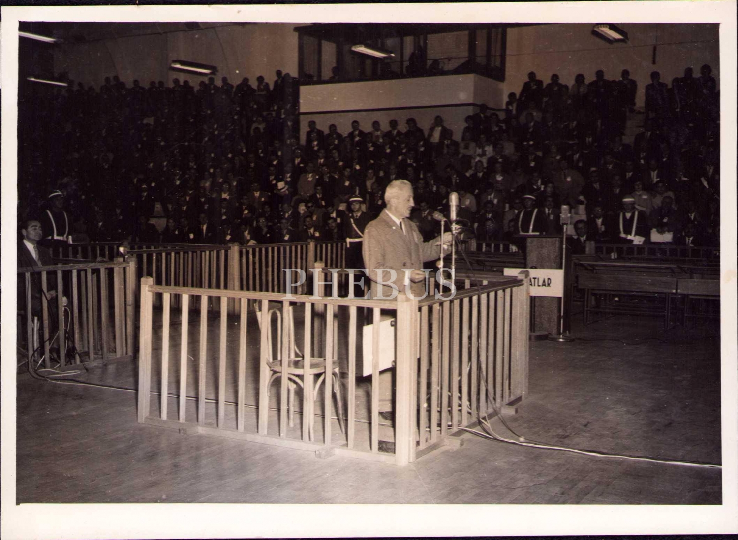 Necip Fazıl Kısakürek'i Yassıada Duruşma Salonu’nda Gösteren 1960 Tarihli Fotoğraf, Arka Planda Diğer Sanık Olarak Adnan Menderes Görülmekte, 12x17 cm