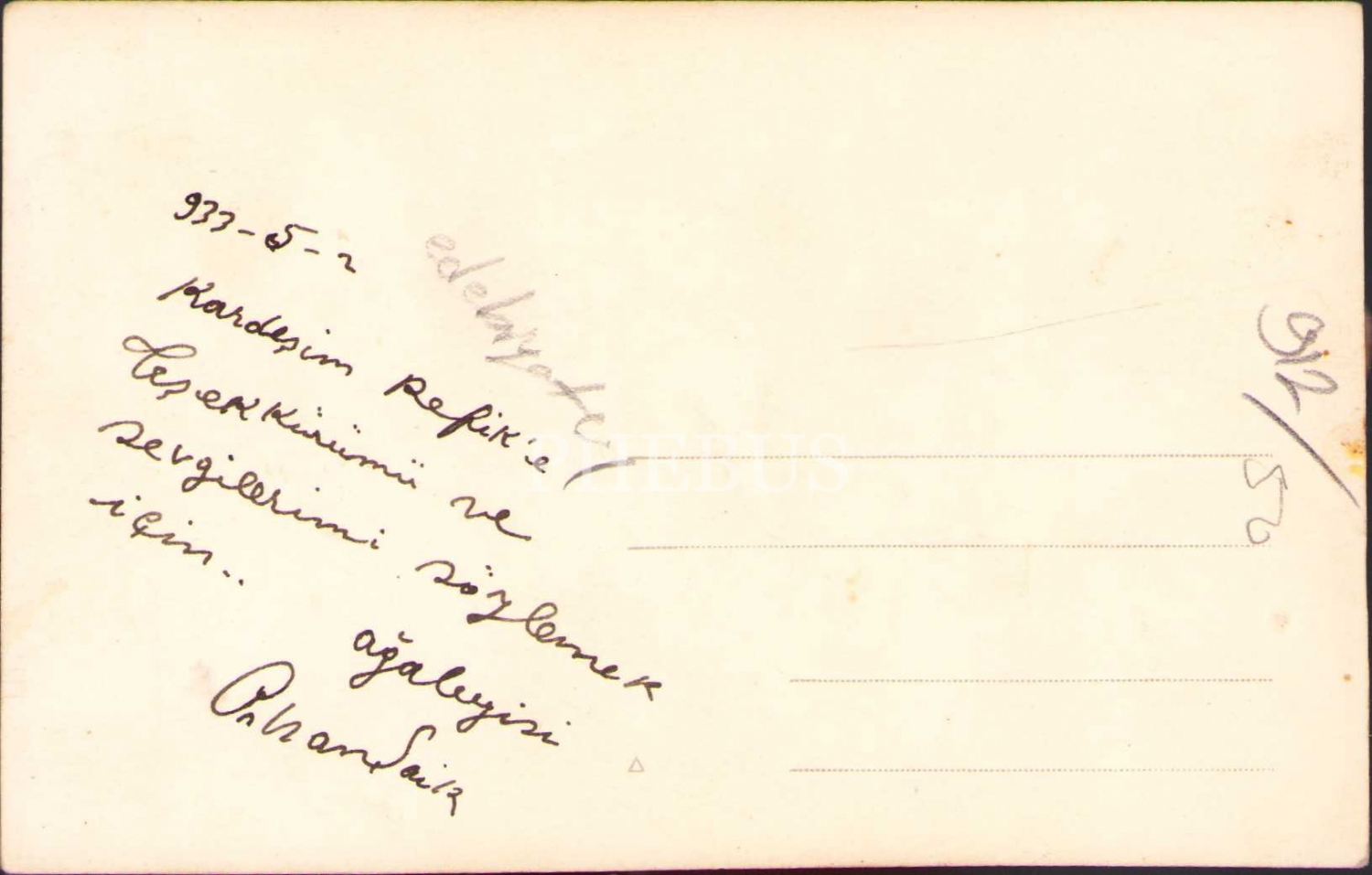 Fotoğrafın arkasında "933.5.2, Kardeşim Refik'e teşekkürümü ve sevgilerimi söylemek için... Ağabeyiniz Orhan Şaik" şeklinde not düşülmüştür.