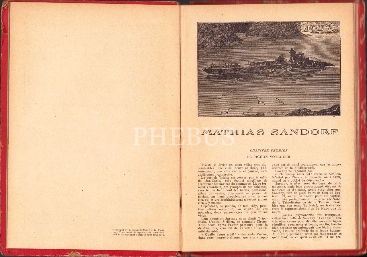 Jules Verne'in Fransızca "Mathias Sandorf", Librairie Hachette Paris 1923, 94 sayfa, cilt sırtı yıpranmış haliyle, 17x24 cm