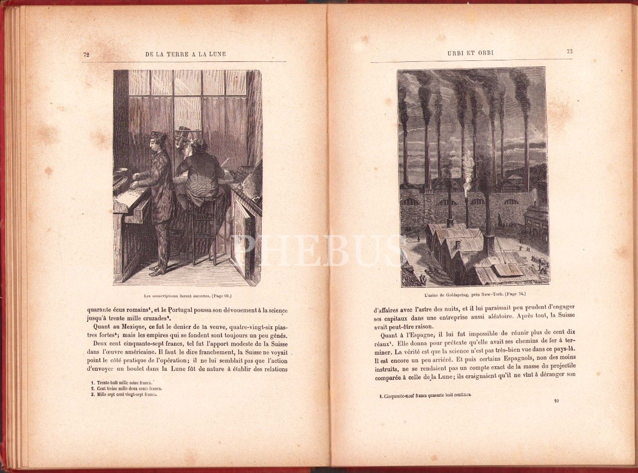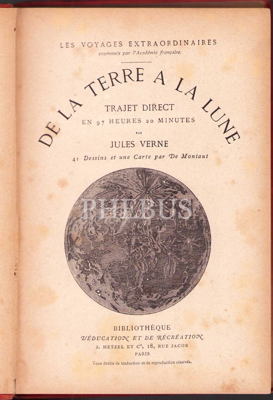 Jules Verne'in Fransızca "Ay'a Yolculuk", [De La Terre a la Lune], Hetzel Collection, 169 sayfa, cilt sırtının bazı yerleri kopmuş haliyle, 18x27 cm
