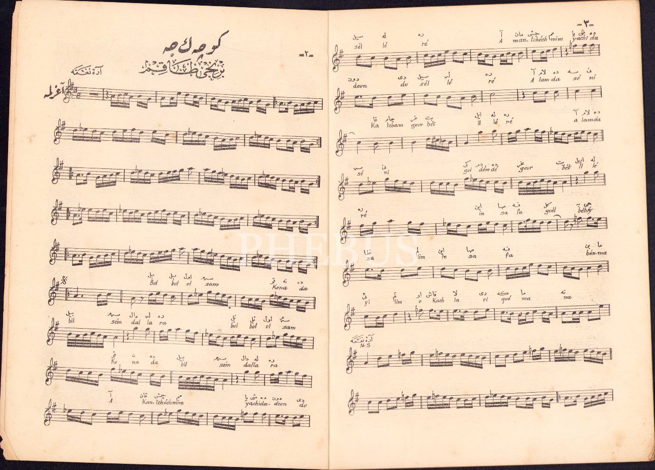 Kudmanizade Şamlı İskender yayınlarından Osmanlıca Köçekçe Birinci ve İkinci Takım, İstanbul, 32 sayfa, 20x27 cm, kapağı yıpranmış haliyle