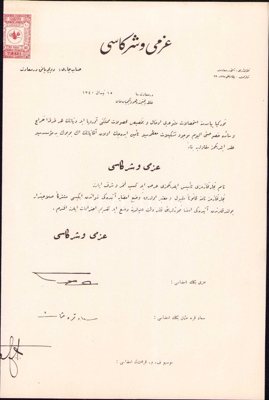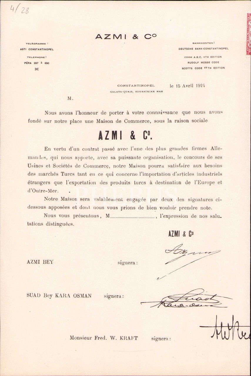 Osmanlıca Azmi ve Şürekası ithalat ve ihracat şirketi imza sirküleri, İstanbul, 20x30 cm