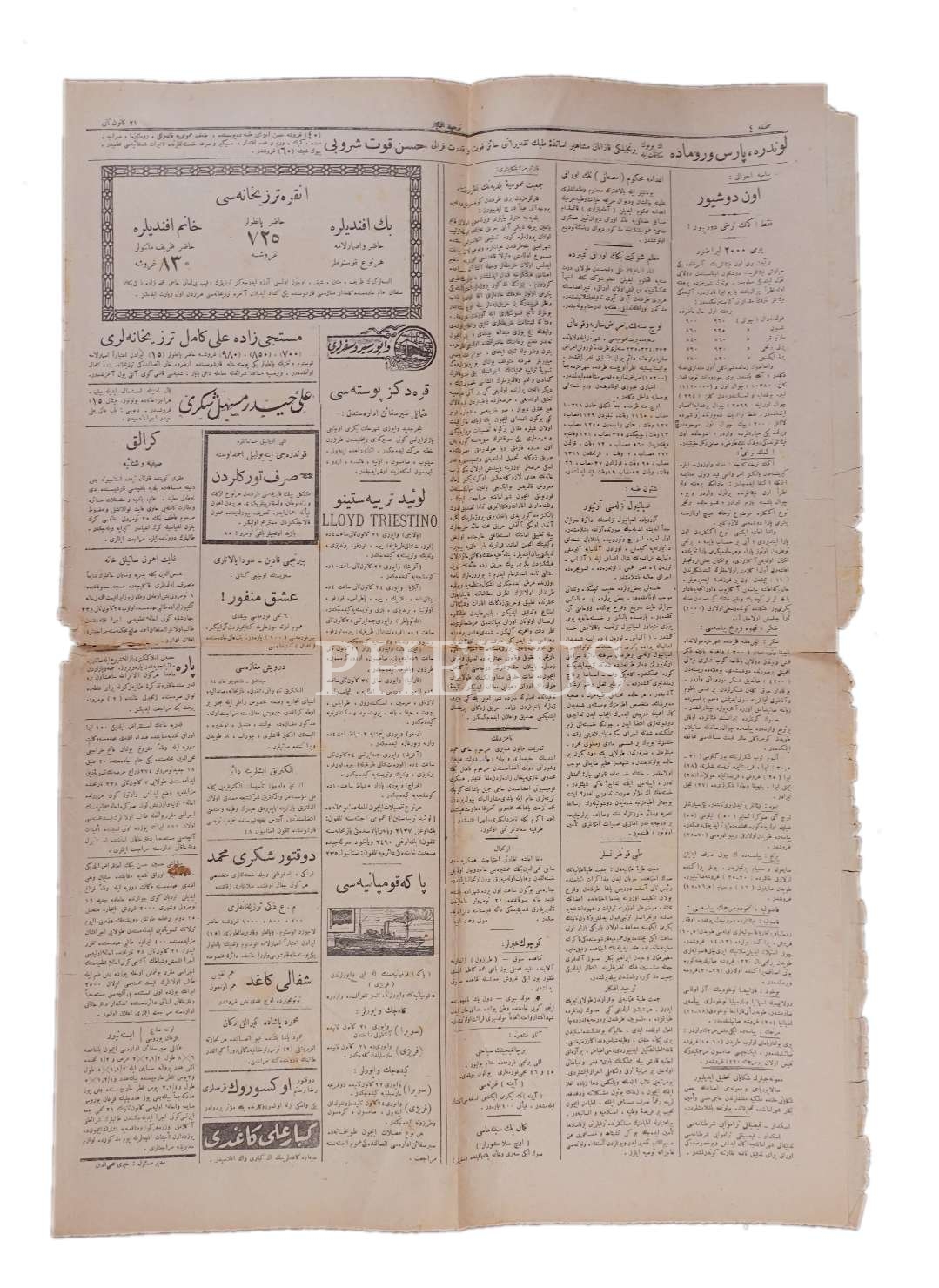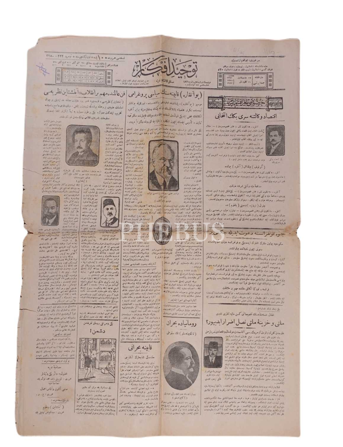 Osmanlıca Tevhid-i Efkâr, 11 Kanunusani 1922, 62x44 cm, yıpranmış haliyle