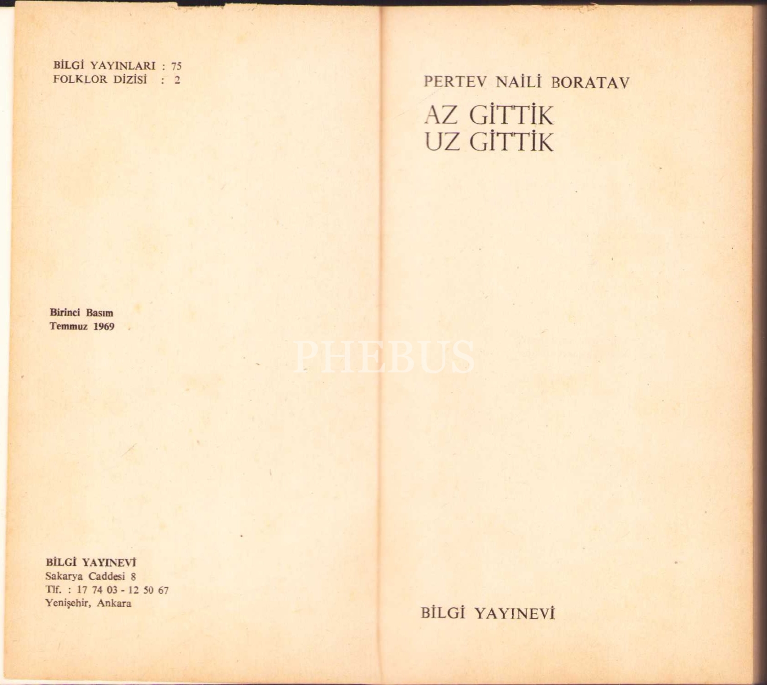 Az Gittik Uz Gittik [1. baskı], Pertev Naili Boratav, Bilgi Yayınevi, Ankara 1969, 432 s., 11x19 cm