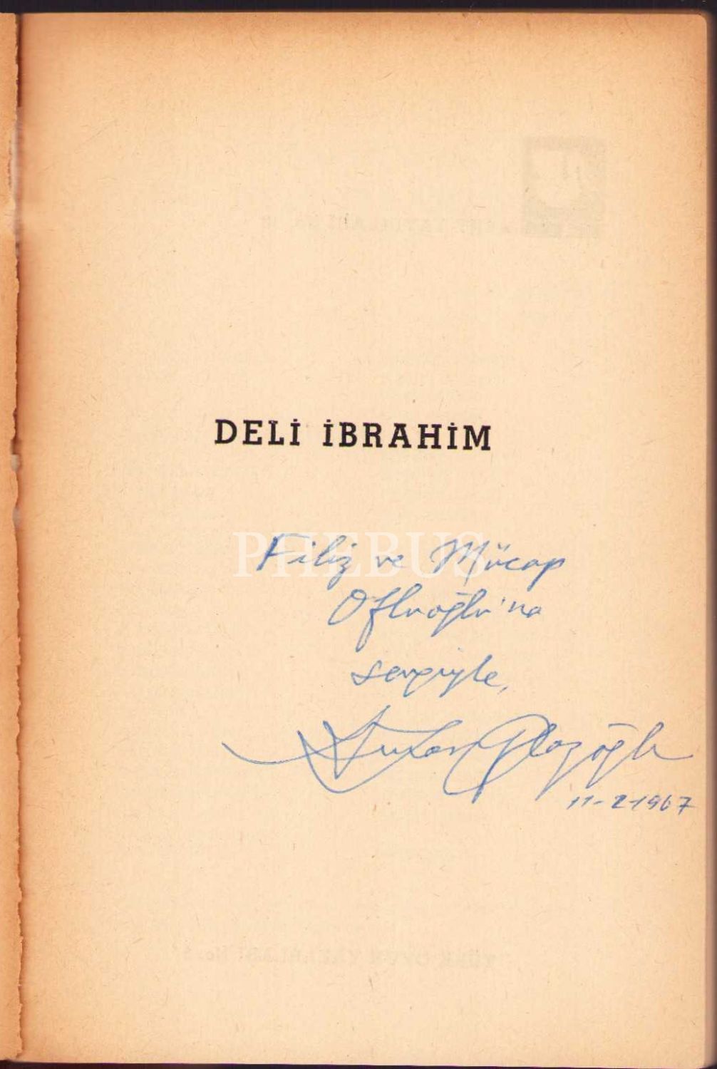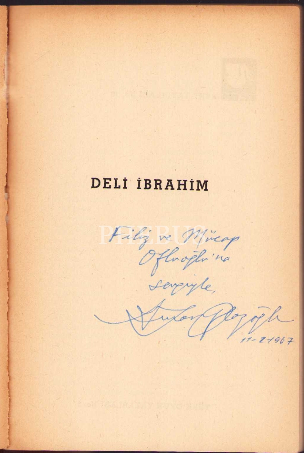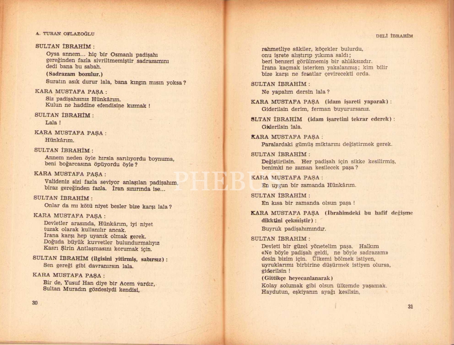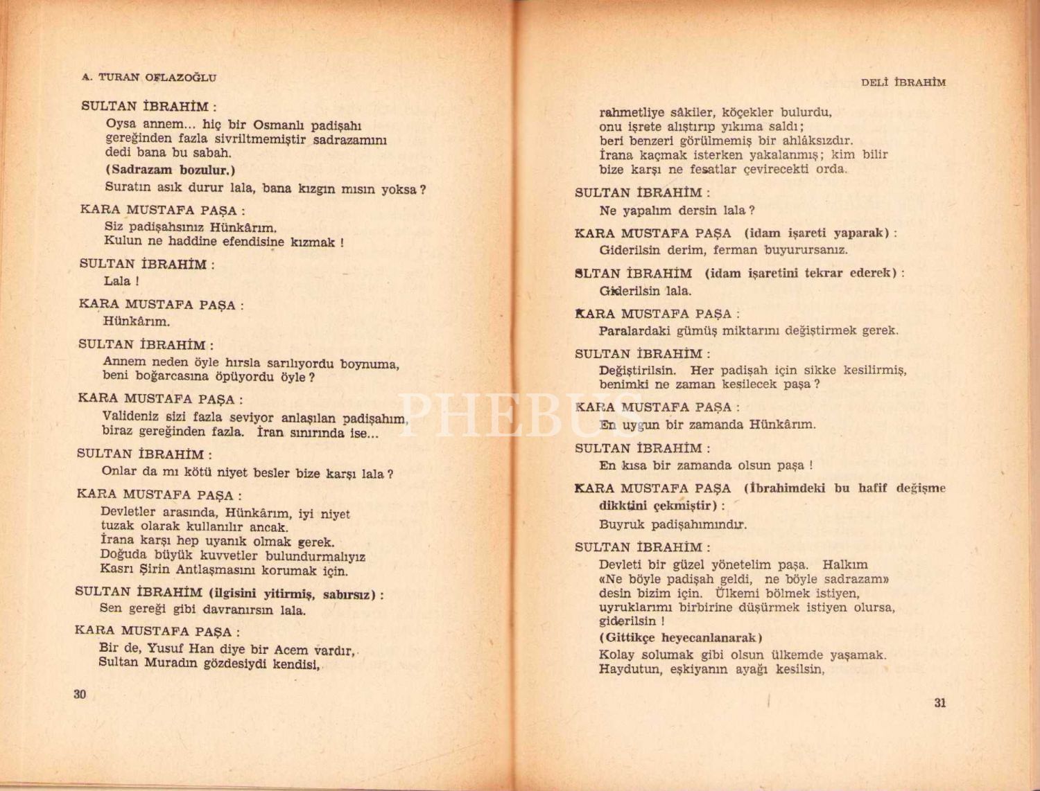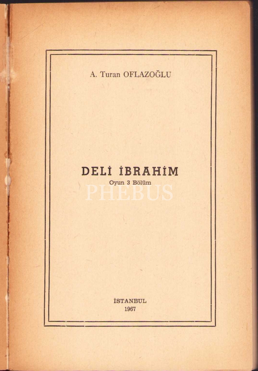 Deli İbrahim [Oyun], A. Turan Oflazoğlu, yazarından ithaflı ve imzalı, Kent Yayınları, İstanbul 1967, 130 s., 13x19 cm