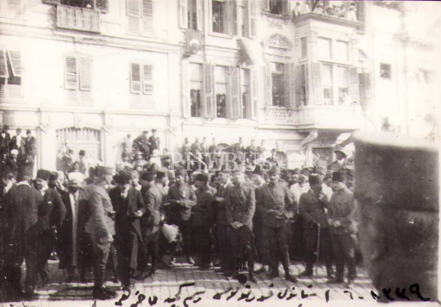 Osmanlıca "1339 İstanbul Kurtuluşu Resm-i Geçidi" yazılı fotoğraf
