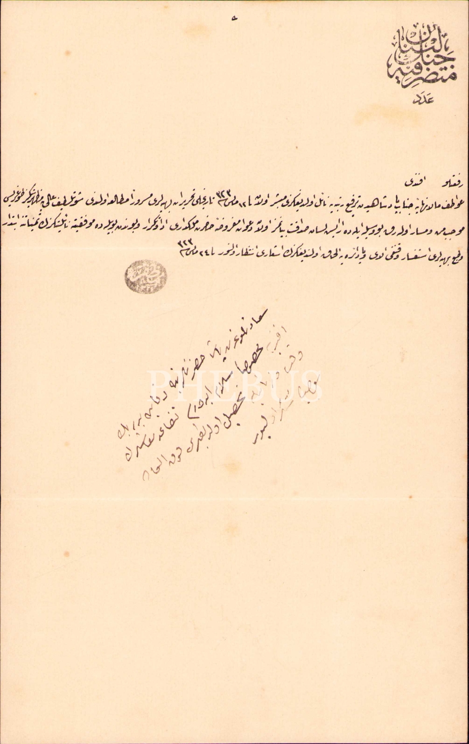 Osmanlıca rütbe terfiine dair bilgilendirme mektubu, 1323 tarihli, 17x27 cm