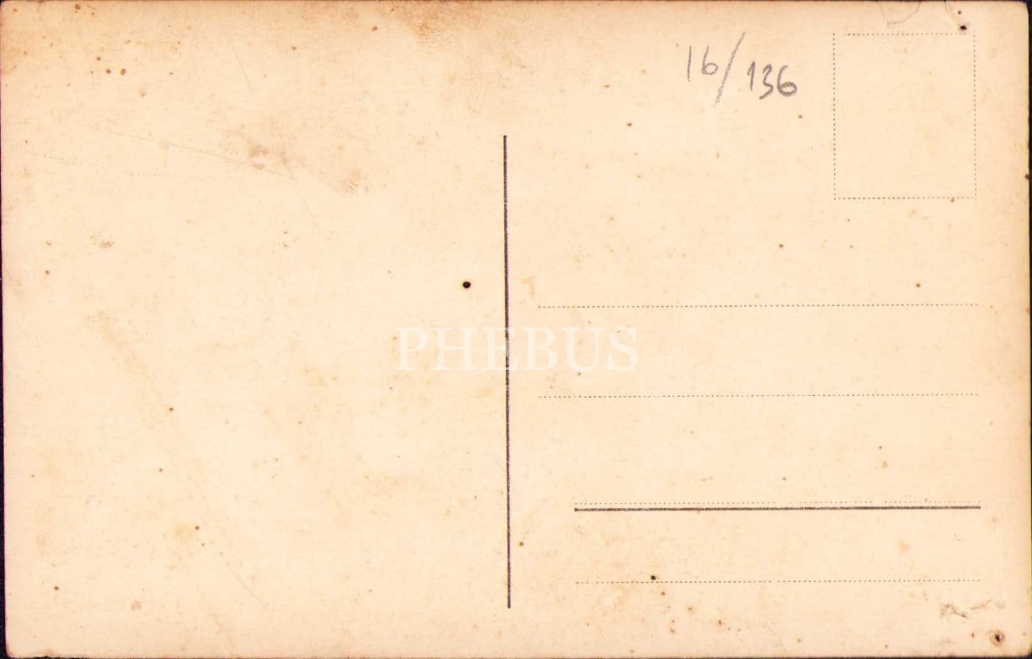 Elinde çiçekle poz veren kız çocuğunun elle renklendirme kartpostal, yıpranmış haliyle