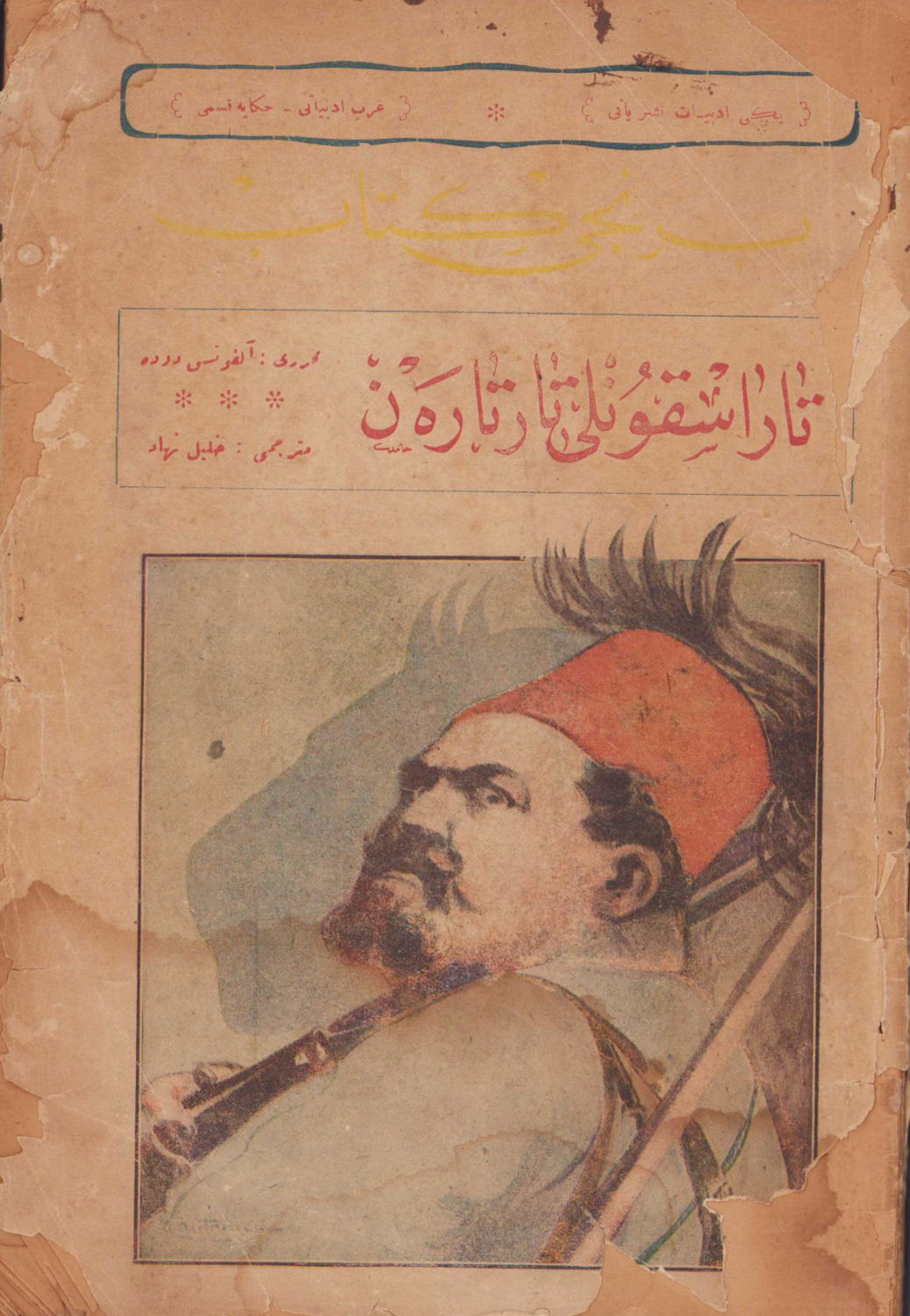 Taraskonlu Tartaren, Yazar Alphonse Daudet, çeviri Halil Nihat, 1920 tarihli, İstanbul, Ahmet İhsan ve Şürekası Matbaası, Osmanlıca, 138 sayfa, 17x24 cm, haliyle , kapak yorgun, arka kapak yok