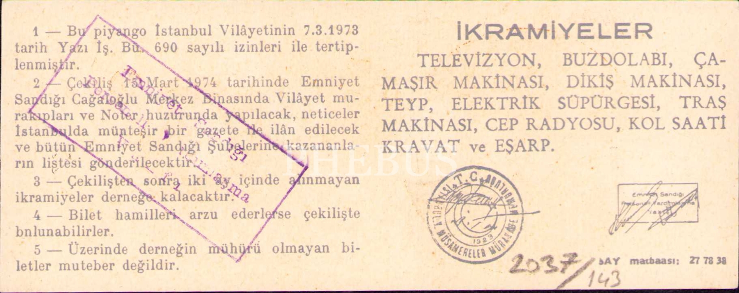 Emniyet Sandığı Personeli Yardımlaşma Vakfı eşya piyangosu, 15 Mart 1974, 6x15 cm