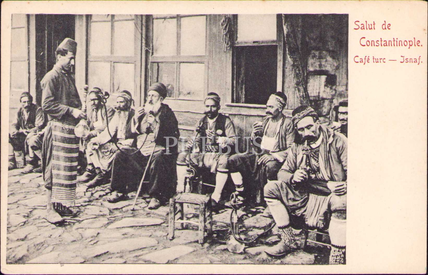 Türk kahvehanesi, Constantinople, alt köşesi hafif kırık haliyle