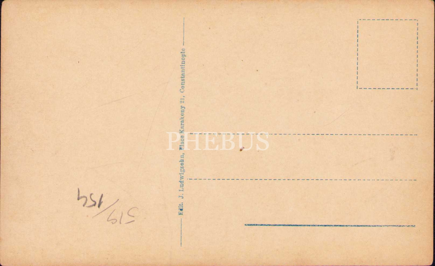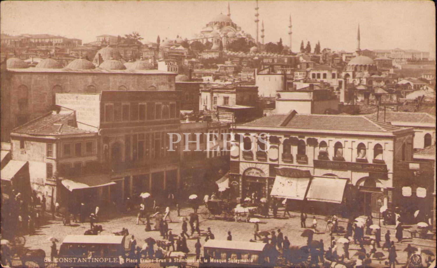 Süleymaniye Camii ve Osmanlıca tabelalı çarşı görünümü, Constantinople, ed. J. Ludwigsohn, kenarları hafif soyulmuş haliyle