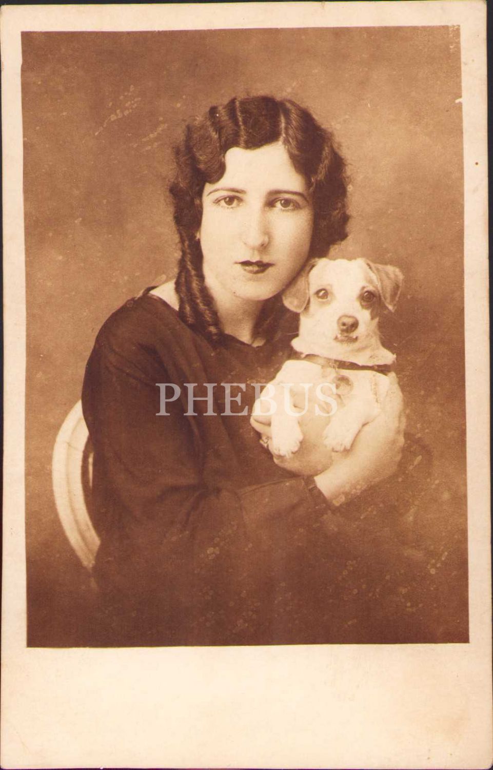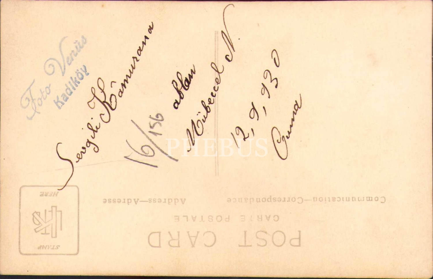 Köpeğiyle poz veren genç hanımefendi, 1930 tarihli ithaf yazısıyla, Foto Venüs-Kadıköy damgalı