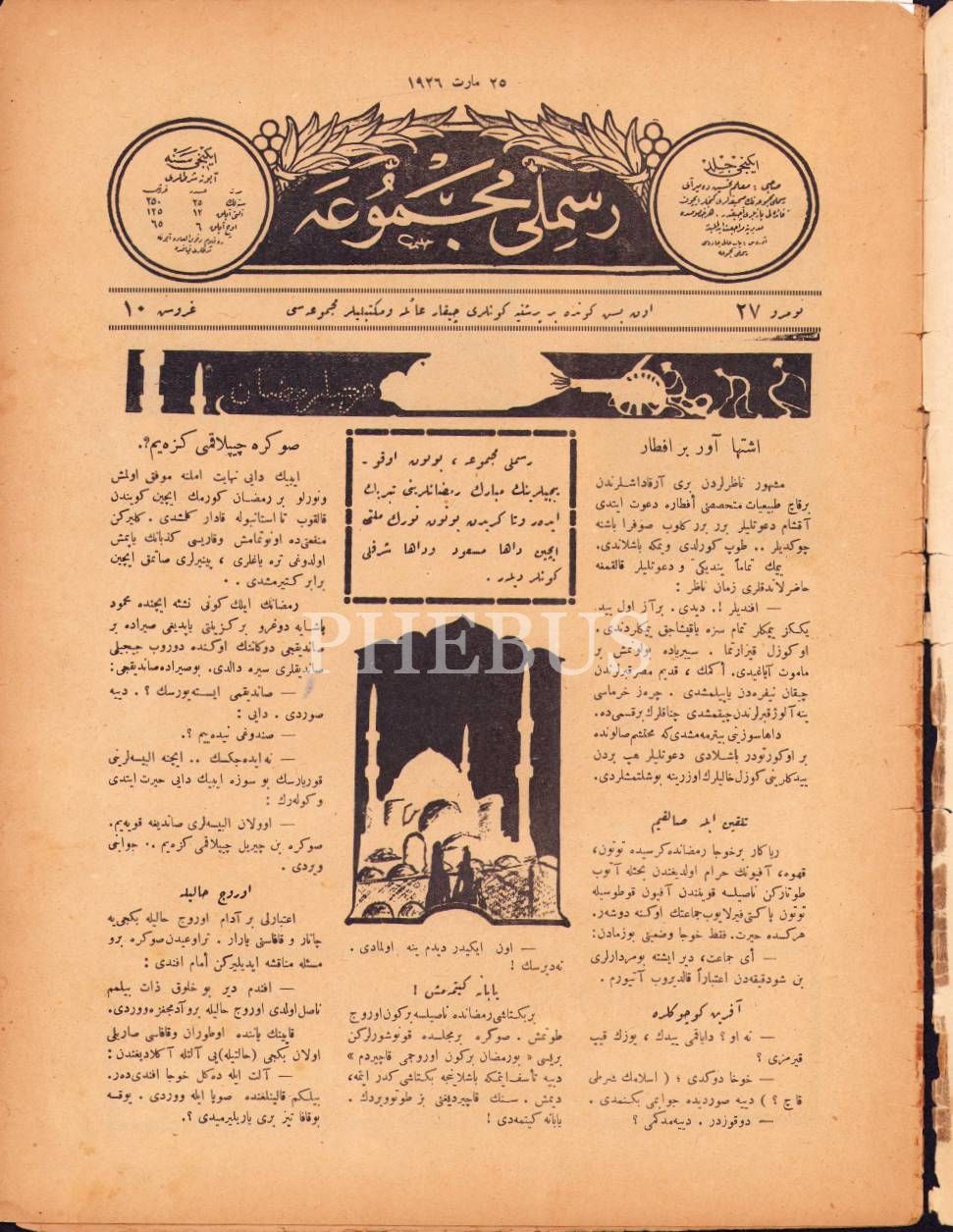 Osmanlıca Resimli Mecmua 27. sayı, 25 Mart 1926, 23x31 cm, kenarları yıpranmış haliyle