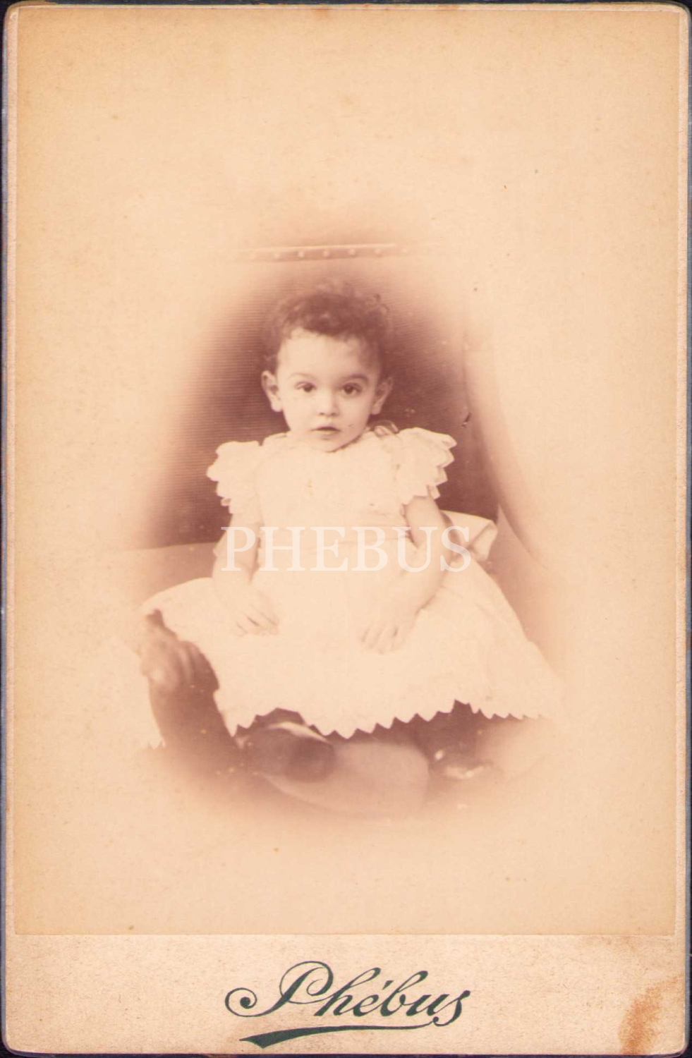Küçük kız çocuğu kabin fotoğrafı, Phebus Fotoğrafhanesi-Constantinople, 11x16 cm