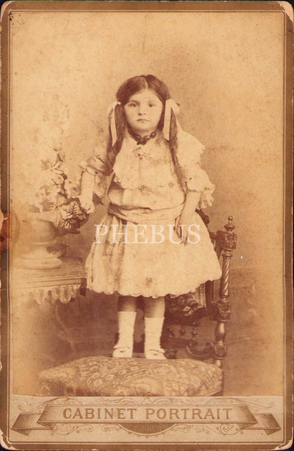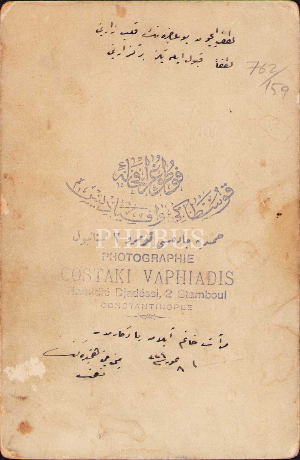 Kız çocuğu kabin fotoğrafı, 1324 tarihli Osmanlıca ithaf yazısıyla, Foto Costaki Vaphiadis Fotoğrafhanesi-Constantinople, 11x16 cm, paspartusu yıpranmış haliyle