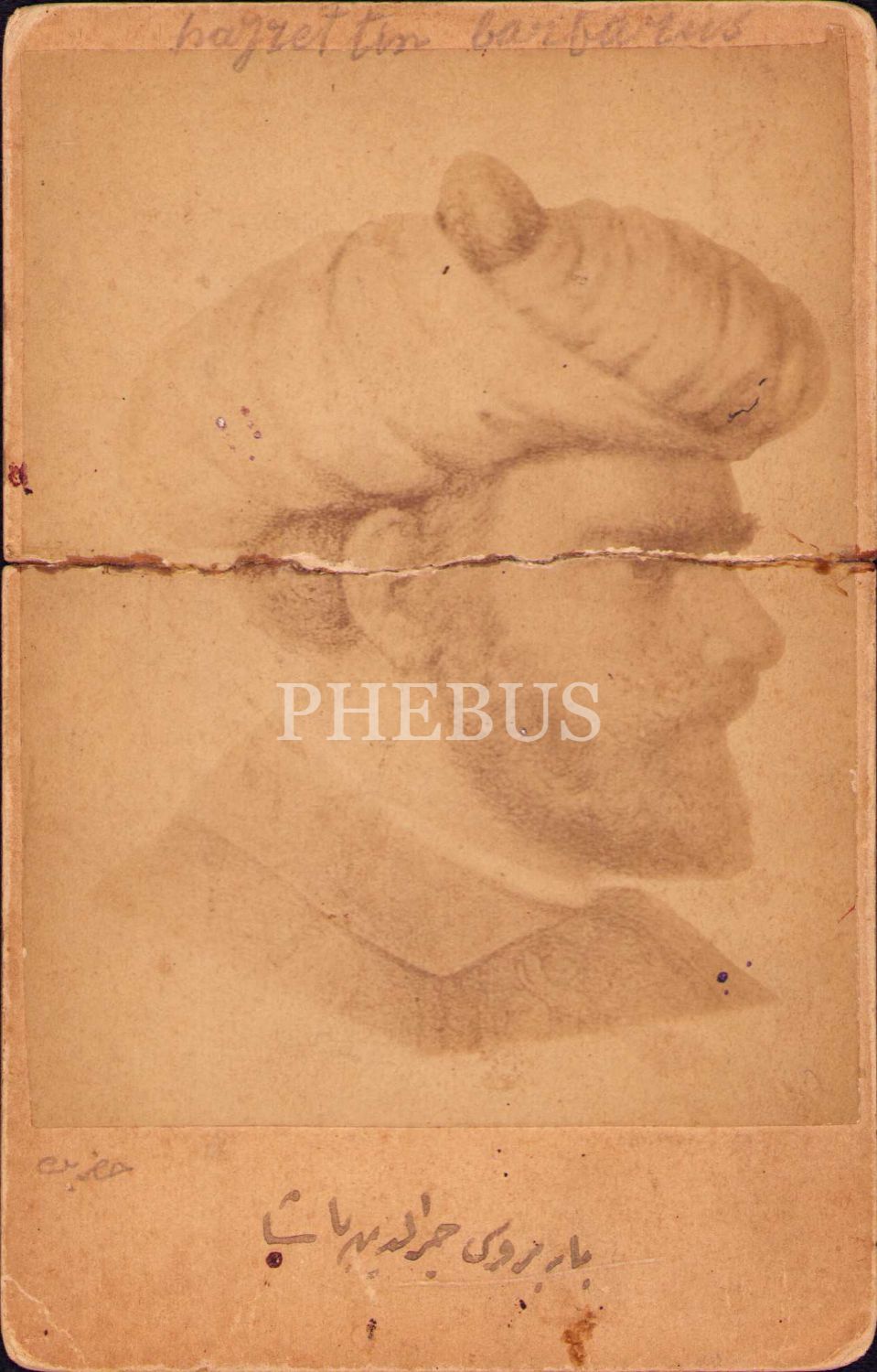 Barbaros Hayreddin Paşa, arkasında Osmanlıca açıklama mevcut, 10x13 cm, epey yıpranmış haliyle