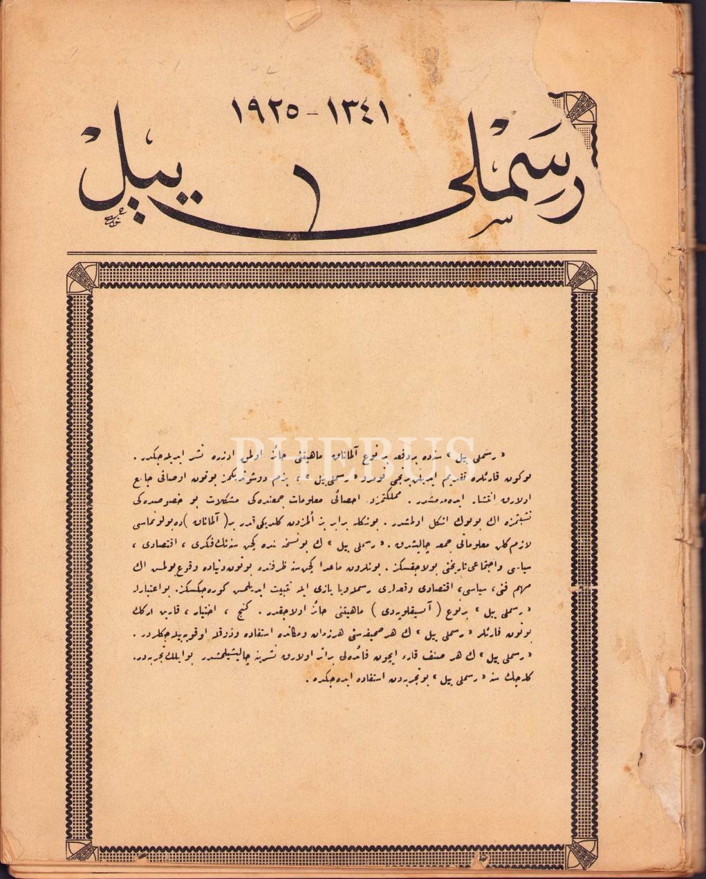 Osmanlıca Resimli Yıl 1925 [Almanak], 176 s. [sondan eksik], 23x30 cm, ciltsiz ve kapak sayfası yıpranmış haliyle