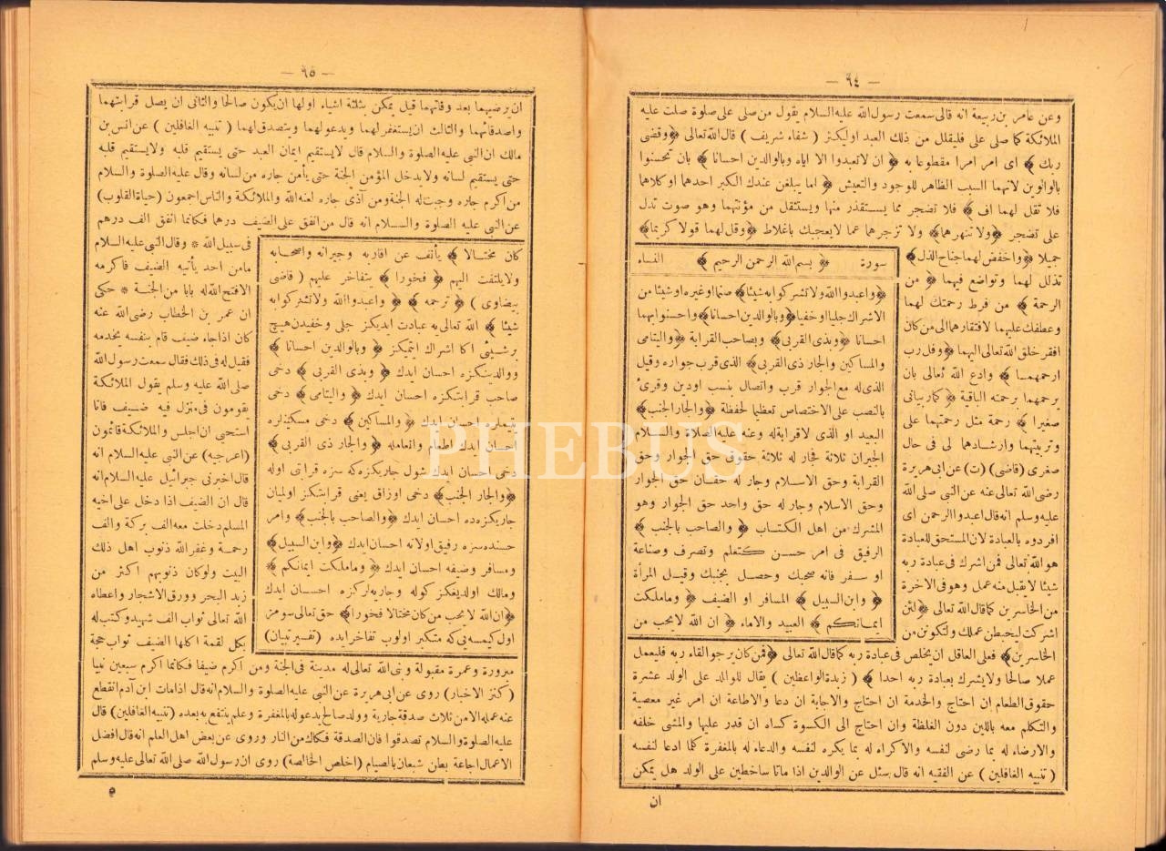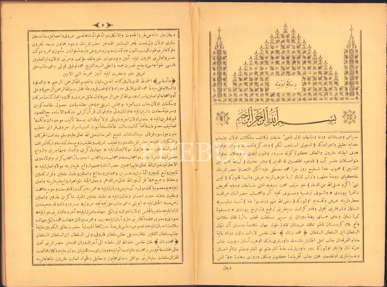 Osmanlıca-Arapça Dürretü'n-Nâsihîn Osman b. Hasan el-Hobevî ve Risâle-i Ed'iyye [Dua Risalesi], Mehmed Tevfik, Ahmed Efendi Matbaası, İstanbul, 322 s., 16x24 cm, bir sayfası yırtık haliyle
