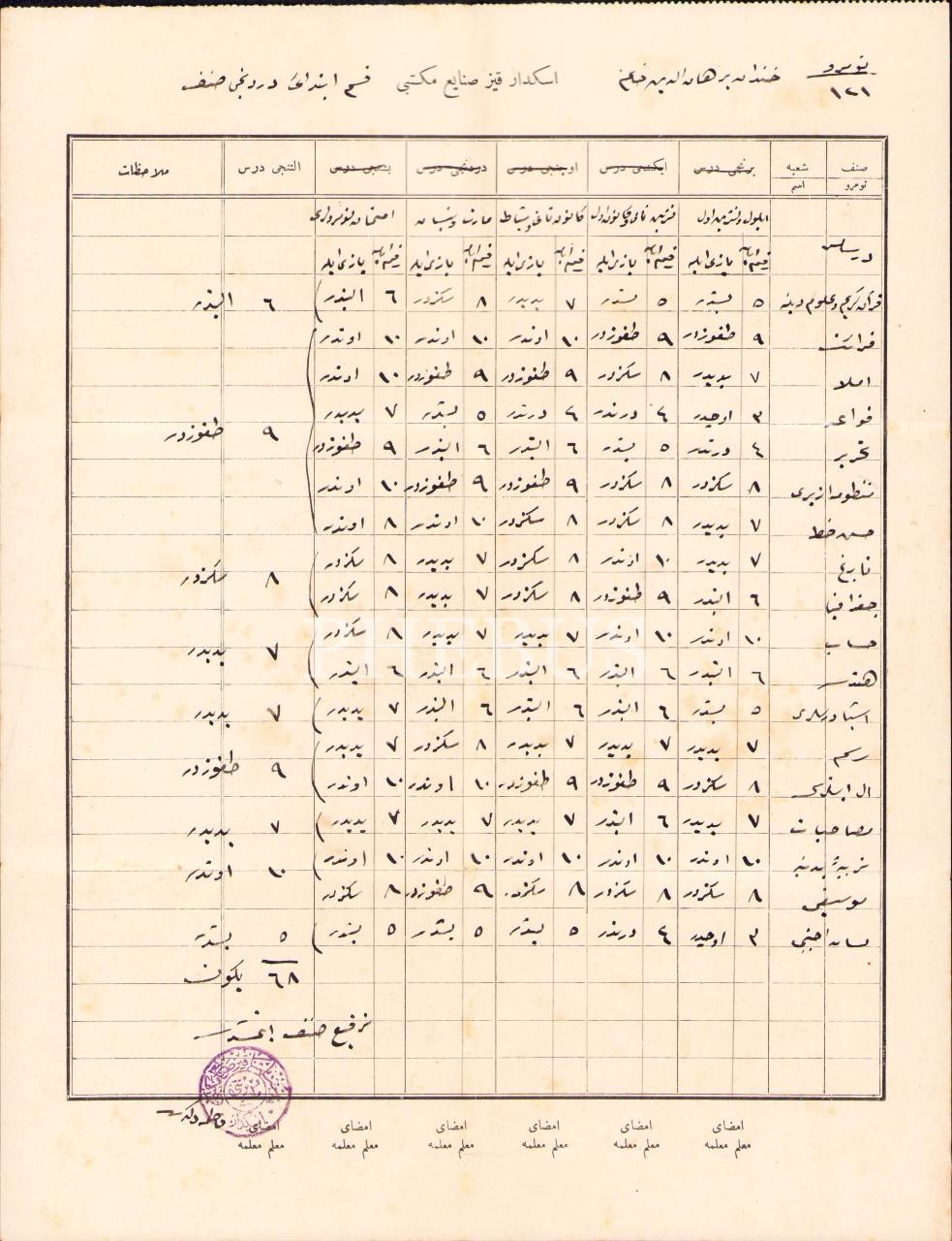 Osmanlıca Üsküdar Kız Sanayi Mektebi öğrenci karnesi, 24x31 cm