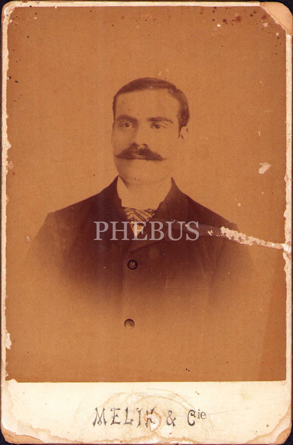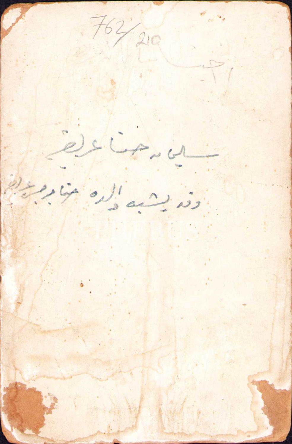 Beyefendi kabin fotoğrafı, arkası Arapça yazılı, 11x16 cm, yıpranmış haliyle